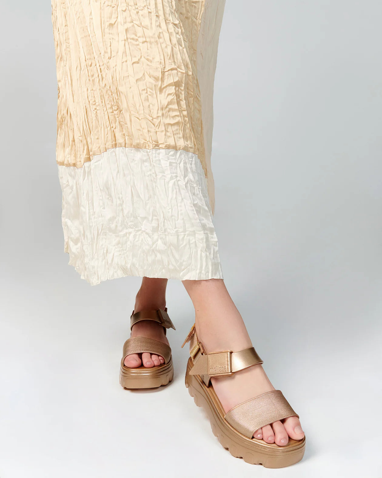 Get your shine on from head to toe in the Kick Off Metallic Sandal. Sporty, trendy, and comfy all in one, the Kick Off is one of our most popular platform sandals and for good reason. Its chunky, lightweight sole and adjustable straps make it easy to get the just-right fit you need to stay on-the-go and in the sunshine all summer long.