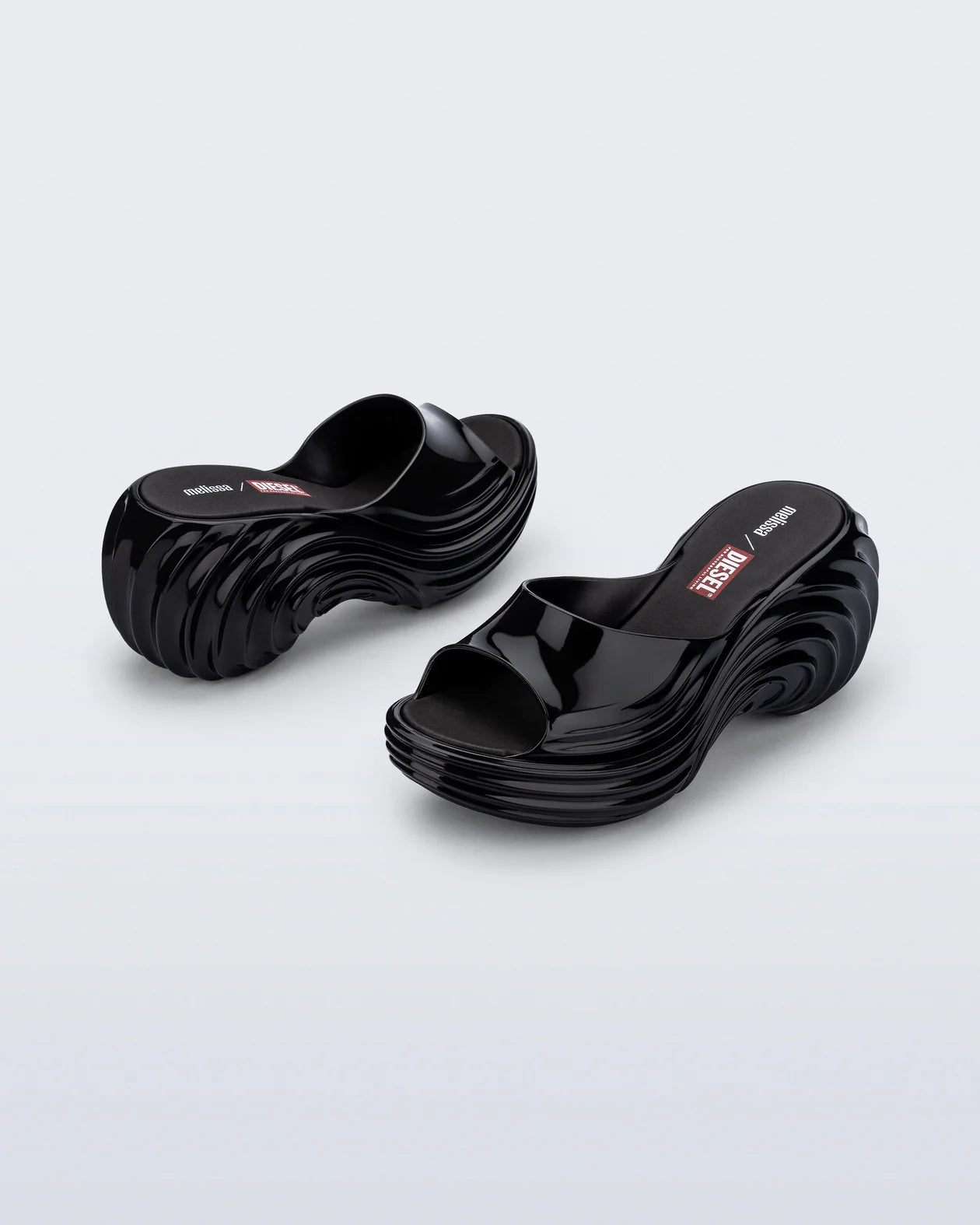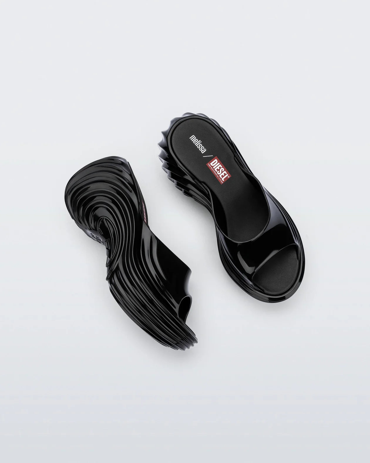 The Melissa/Diesel collection introduces the future of footwear with the Quantum Platform. Parametric design and optical art influence the bold aesthetic of this futuristic, elevated sandal, fusing innovation with algorithmic inspiration. The design is a testament to bold creativity and meticulous execution, with a flawless combination of sophisticated color palettes, modern textures, and advanced technologies. Signature to the collection is the Diesel “D” monogram, re-imagined as a striking aesthetic element that perfectly enhances the dynamic and contemporary character of the designs.