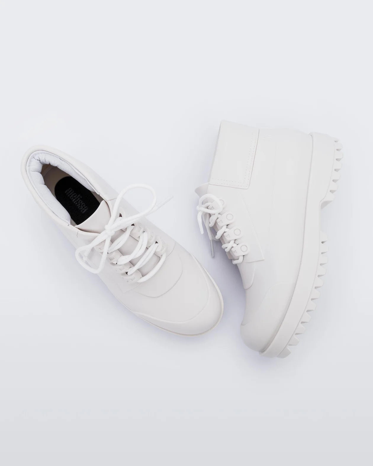 Our combat boots are a revisited version of the traditional combat boots. In a more robust version, they now come with heavy tractor soles. All these features give the Melissa Ares a versatile all-occasions style. Plus, it's super comfortable and yet super modern!