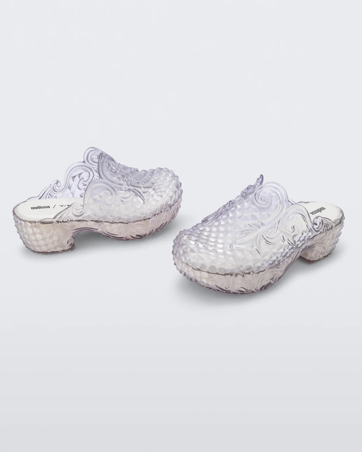 In an unprecedented collab that celebrates the extraordinary, Melissa + Y/Project features unusual cuts, shapes, and reconstructions. The result is a combination of conceptual detailing, playful proportions and a witty take on historical references. Our newest release with The French brand, which is highly regarded by top artists around the world, gives life to the Court Clog, featuring a blend of traditional and modern influences through its unique design, bringing a royal mood to the spotlight.