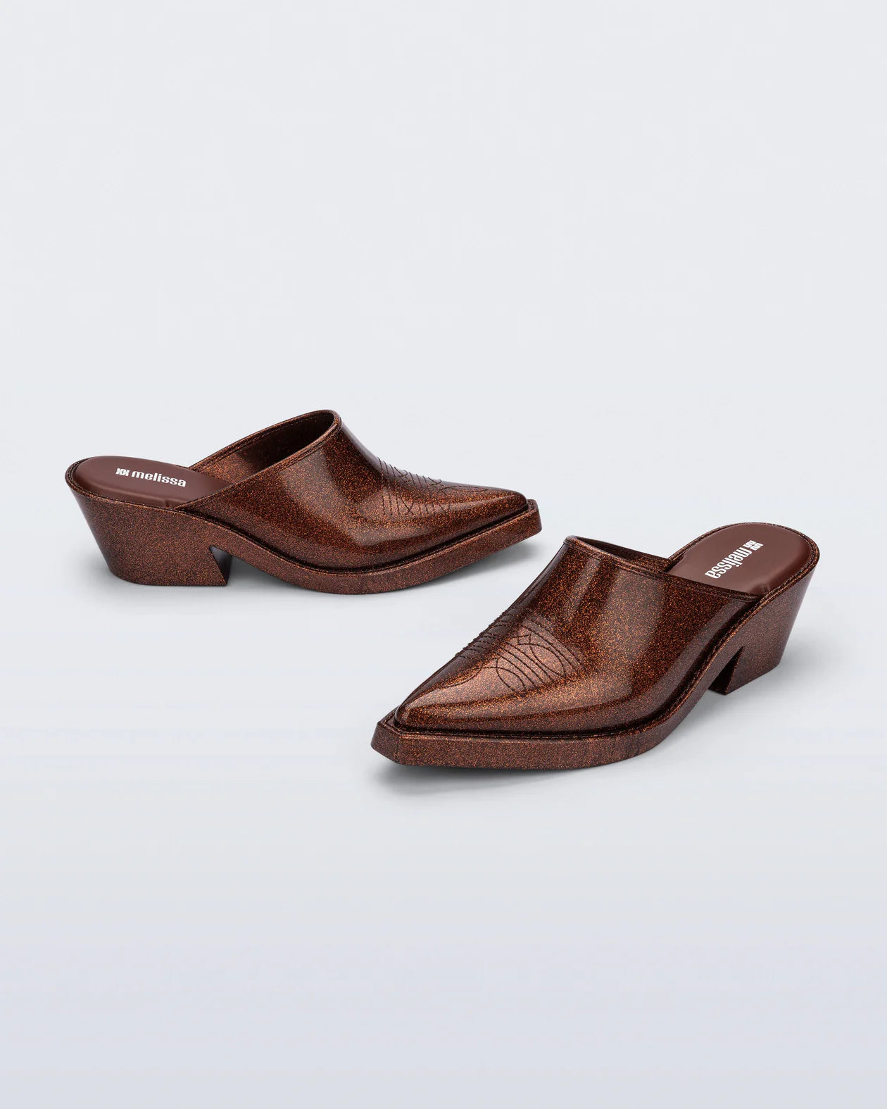 Giddy up. The Texas Mule takes another western style and reinvents it in classic Melissa fashion. With a modern color palette and stitching effects on the upper, this irreverent design appeals to any cowboy or cowgirl ready for the rodeo or the festival.