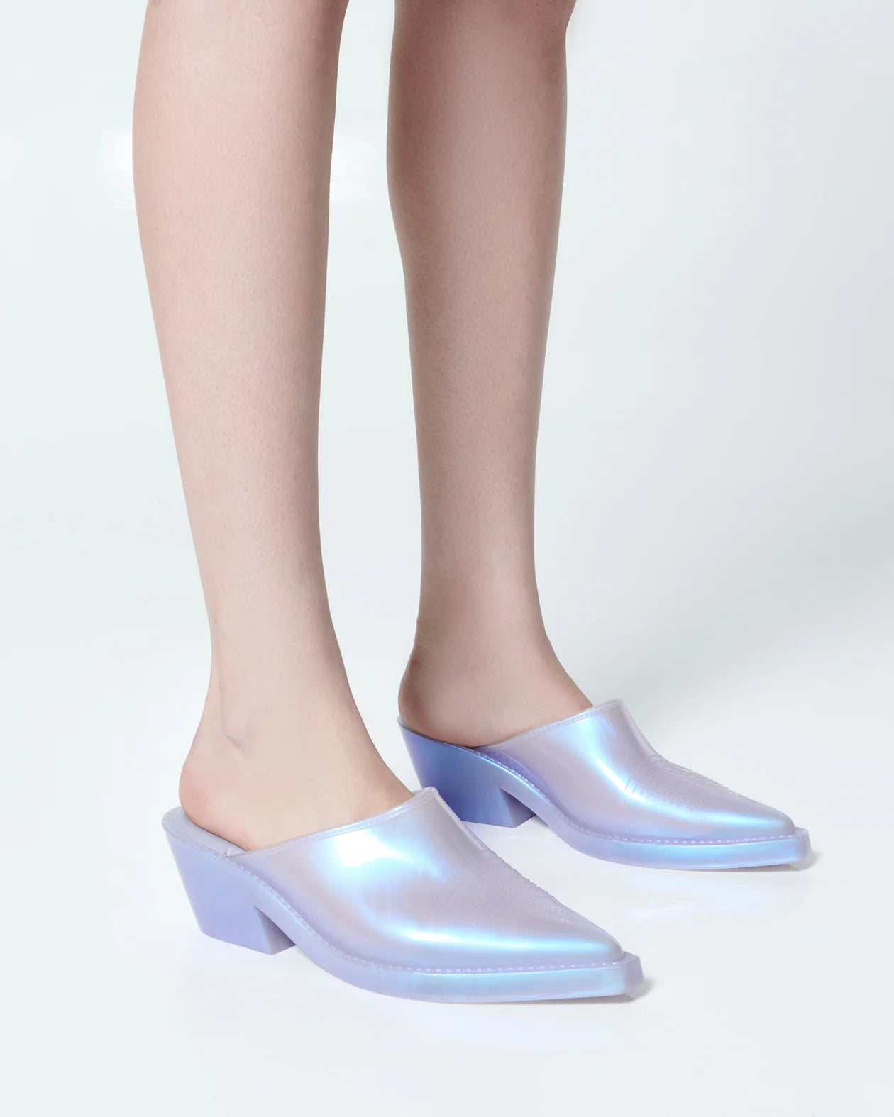 Giddy up. The Texas Mule takes another western style and reinvents it in classic Melissa fashion. With a modern color palette and stitching effects on the upper, this irreverent design appeals to any cowboy or cowgirl ready for the rodeo or the festival.