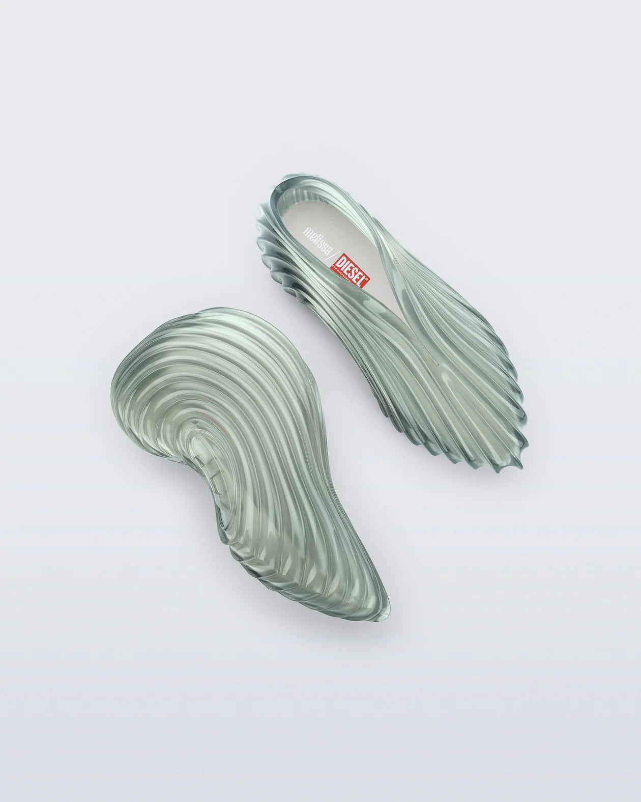 The collaboration between Melissa and Diesel draws inspiration from various elements of fashion, art, and design, incorporating aspects such as parametric design and optical art. The outcome is a collection of three products that feature a futuristic aesthetic, merging the identities of both brands. The "D" monogram from Diesel serves as an aesthetic and signature element of this partnership, resonating with the trends favored by young consumers and Gen Z.