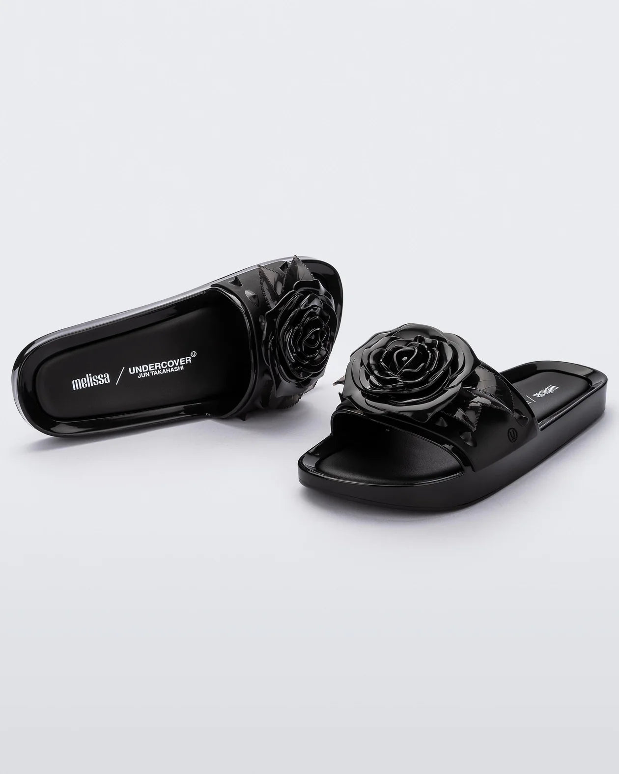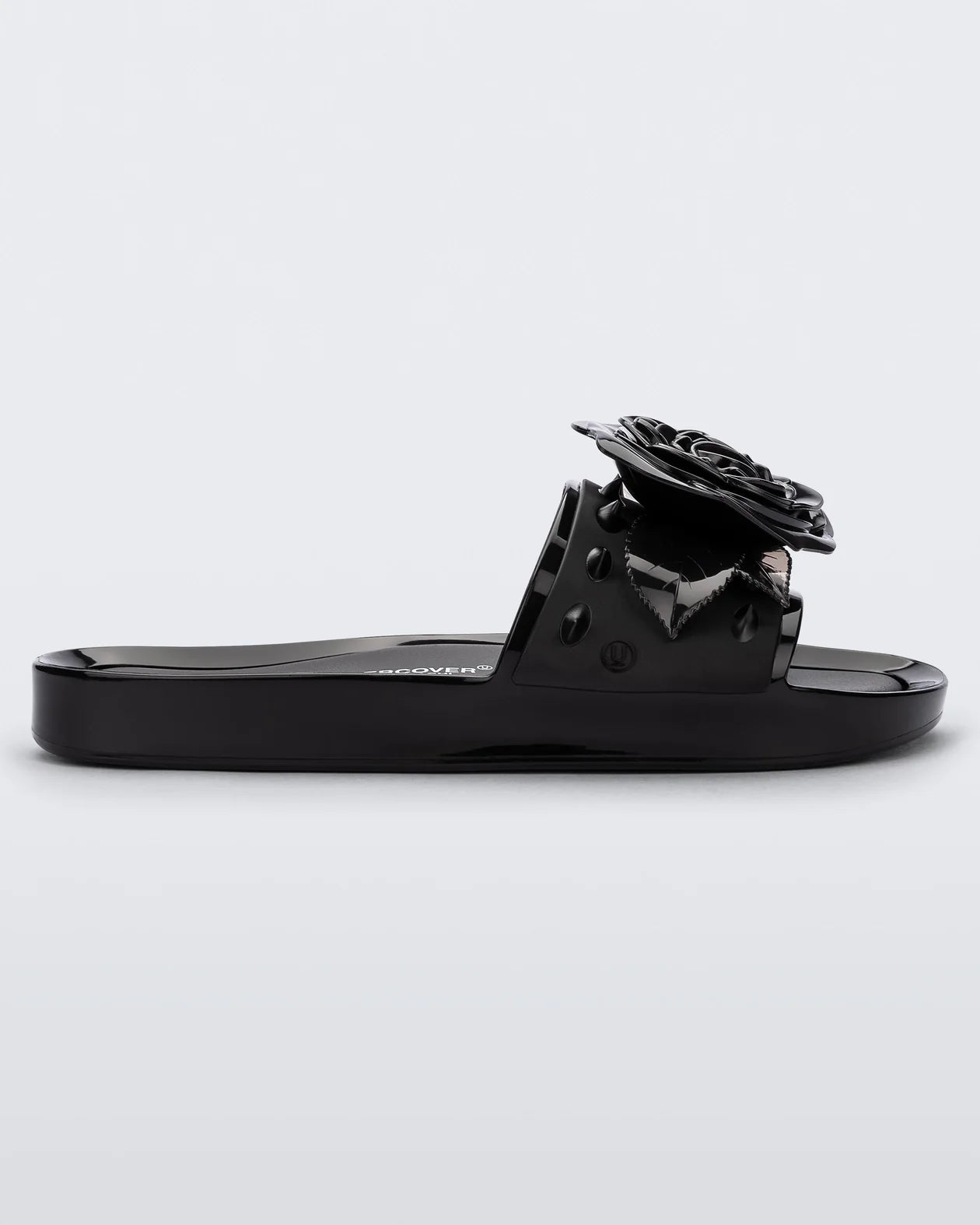 Melissa + Undercover Spike is a new version of Melissas's classic shape: the beach slide. In this super cool version, the slide gets the maxi rose adornment on the Upper strip, with translucent leaves and spikes. It is the perfect choice for those who want to add fashion information to the look of day to day.