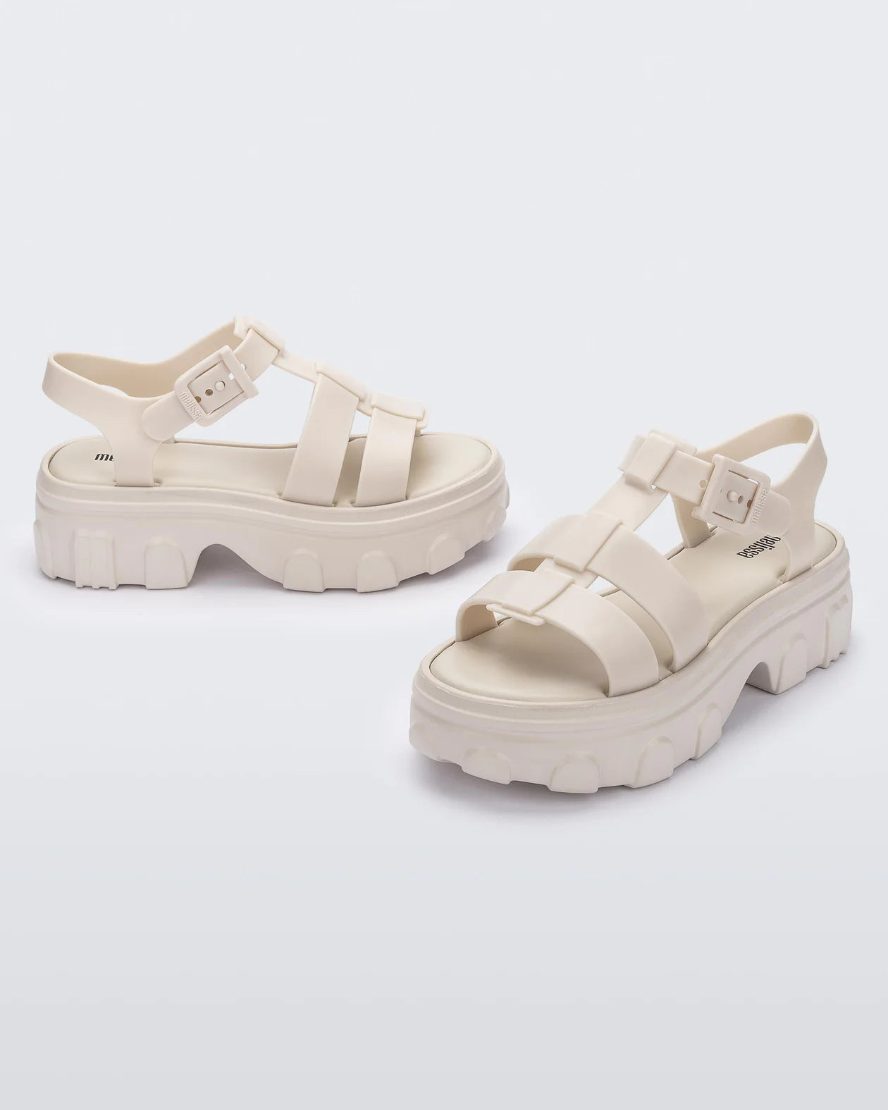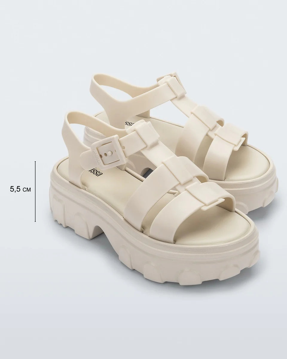 Introducing another stand-out model in the Melissa Universe. Meet the Ella, a chunky sandal with a robust and textured sole in the streetwear style found all over the catwalks. A fisherman style upper and light-as-air insole give this sandal a double-pinch of originality and creativity.
