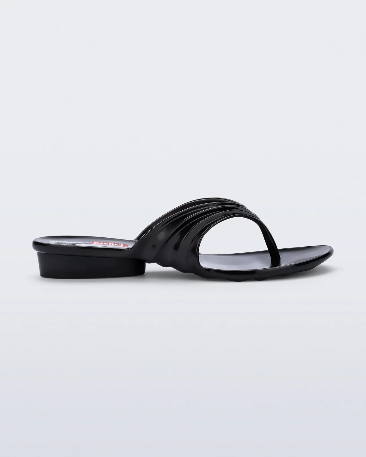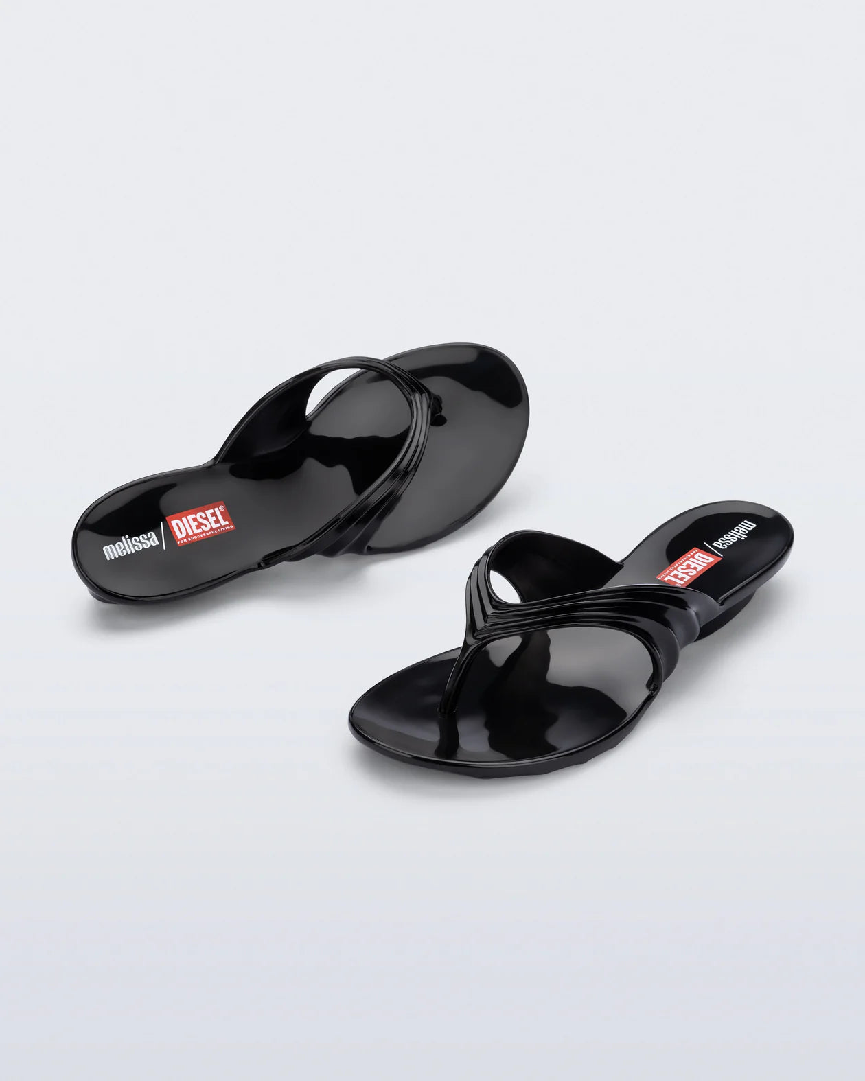 The Melissa/Diesel collection introduces the future of footwear with the Quantum Flip Flop. Parametric design and optical art influence the bold aesthetic of this futuristic flip, fusing innovation with algorithmic inspiration. The design is a testament to bold creativity and meticulous execution, with a flawless combination of sophisticated color palettes, modern textures, and advanced technologies. Signature to the collection is the Diesel "D" monogram, re-imagined as a striking aesthetic element that perfectly enhances the dynamic and contemporary character of the designs.