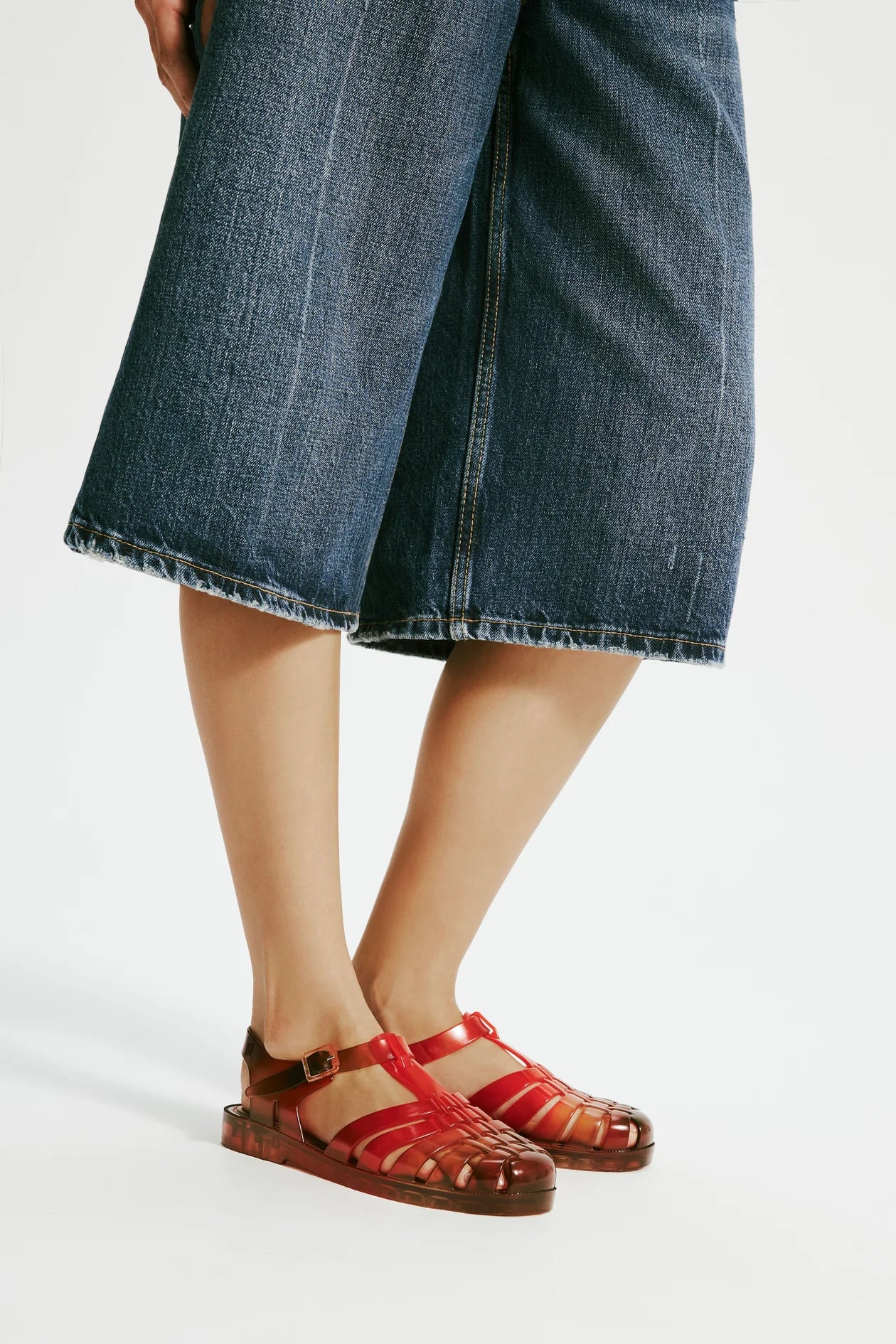 Inspired by the colorful tones that blend on the horizon, the Melissa / Nodaleto Possession celebrates the beauty of a summer sunset. Gradient painting techniques on translucent Melflex® bring the magic of dusk to our iconic jelly for a one-of-a-kind take in collaboration with the luxury footwear brand.