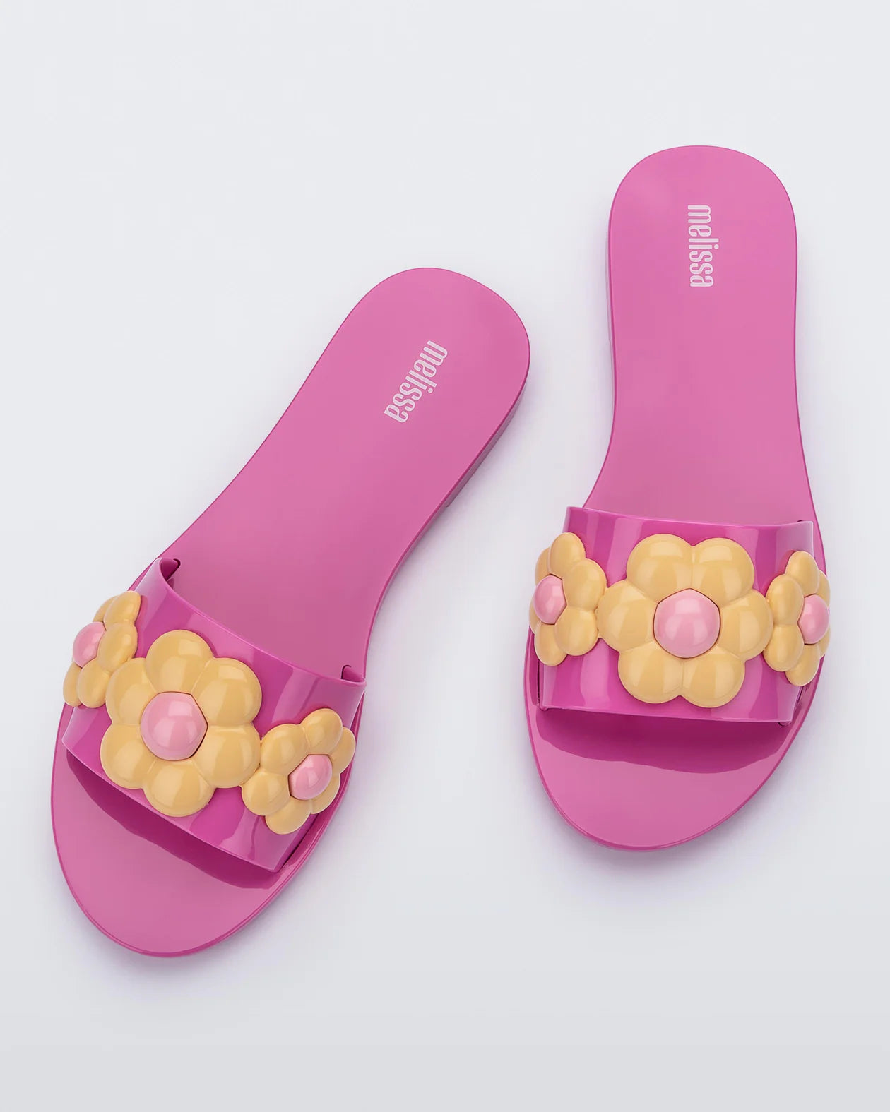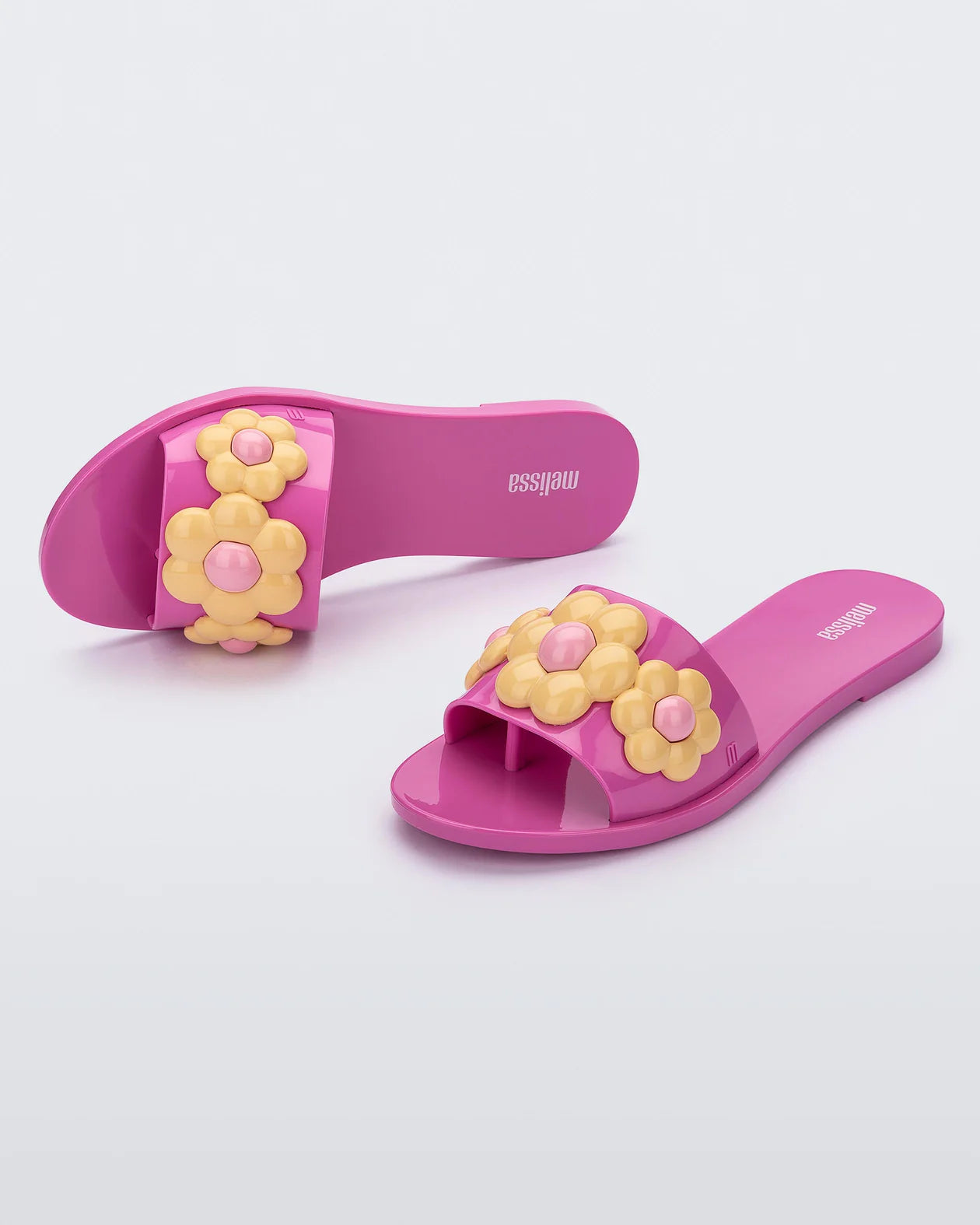 Melissa Babe Spring is a flat sandal with a wide strap on the upper with maxi flowers, which makes it a nostalgic, fun model that has everything to do with sunny days. The color palette translates the fresh and laid-back vibe of the hottest days. It's perfect to wear with dresses and skirts.