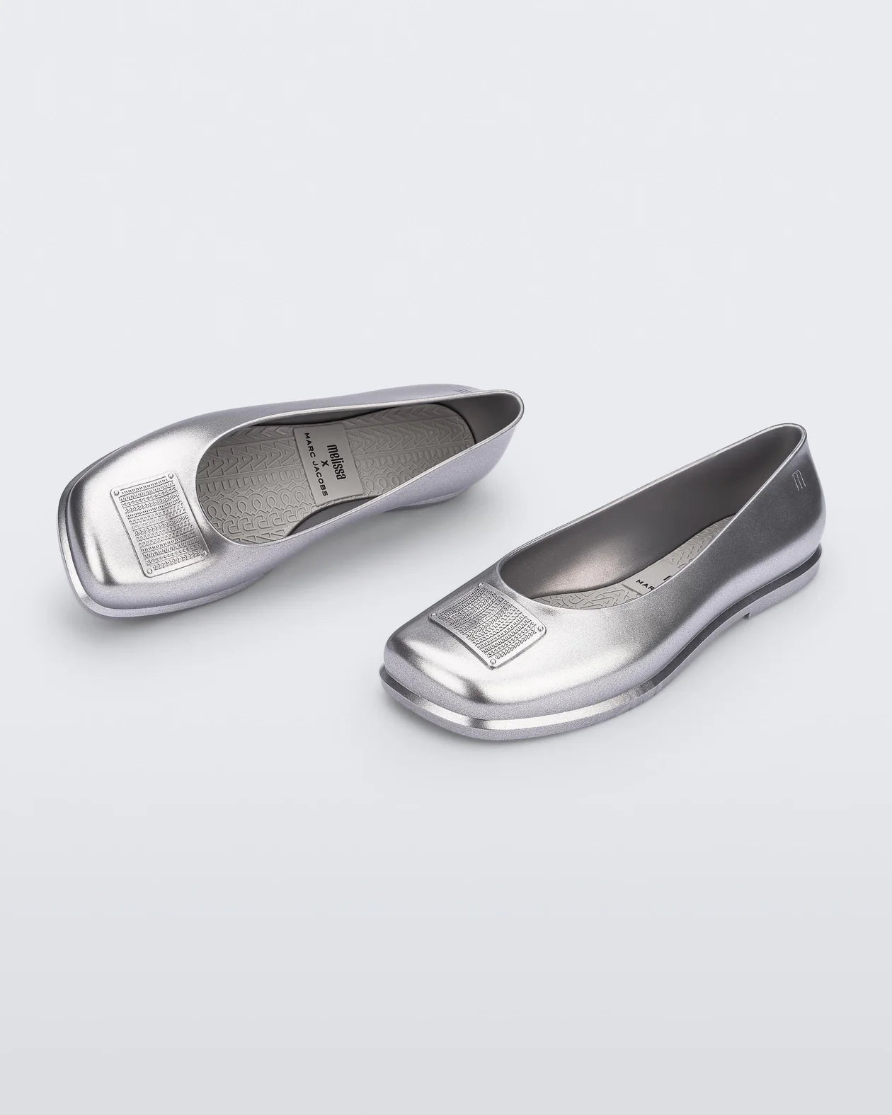 Our Ruby ballet flat gets a designer makeover with this dreamy Marc Jacobs collaboration. The Melissa Ruby + Marc Jacob ballerina boasts a square toe, metallic finish, and Marc Jacobs logo. With a soft insole you'll be feeling light, casual, and never cuter.