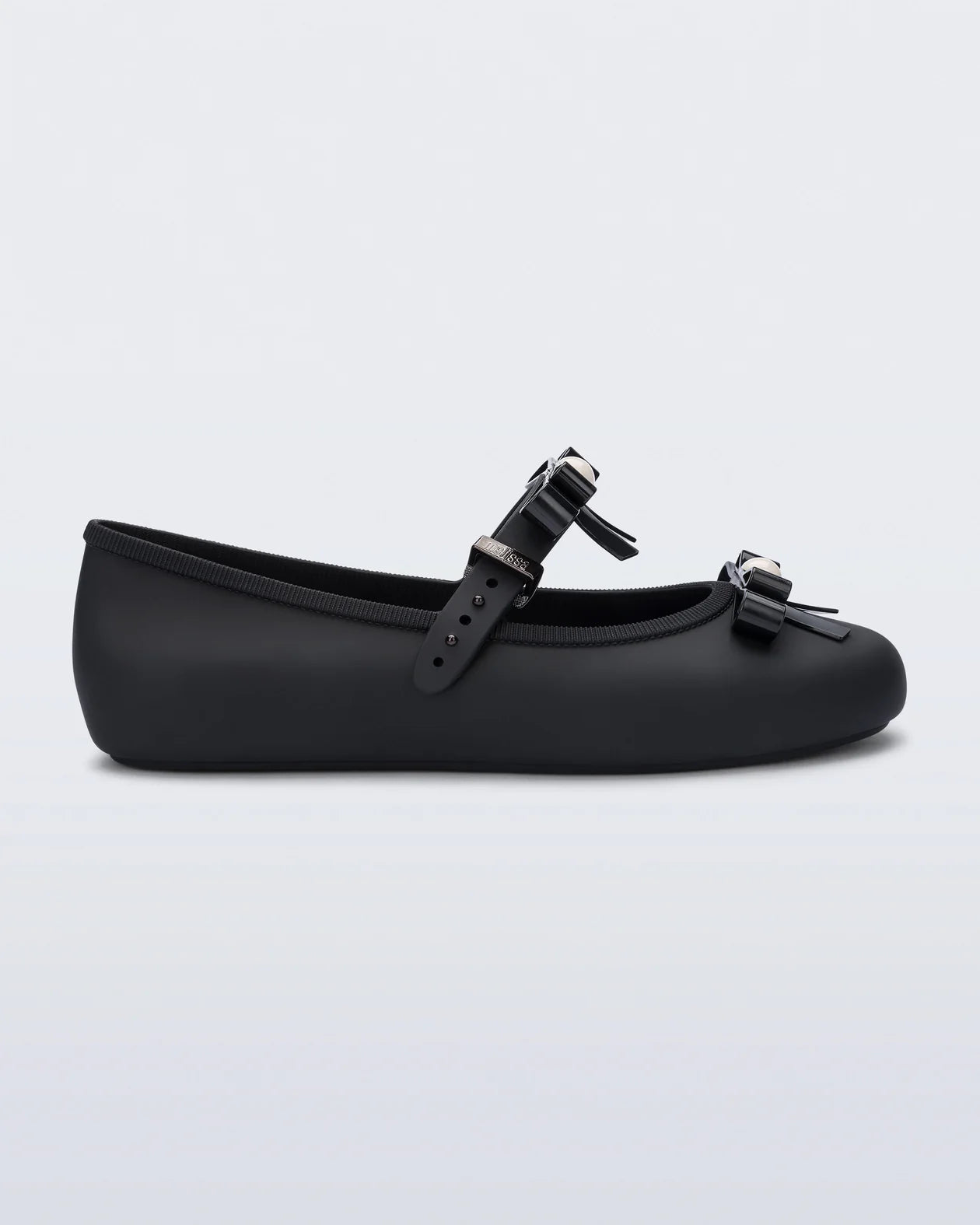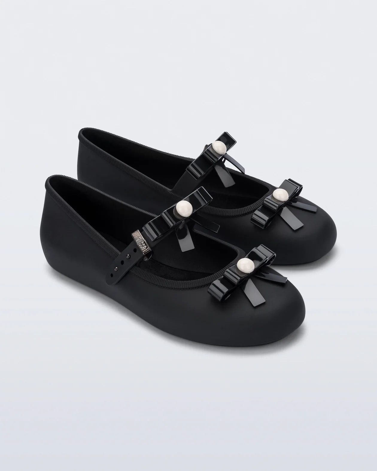 The Melissa Soft Ballerina Bow is a classically feminine ballet flat that features bows on the strap and toe. Adorned with pearl-like detail, this comfy, secure style is an easy way to dress up an otherwise simple look that's undoubtedly comfy and timeless. This easy to clean, season-less shoe can be worn with or without socks.