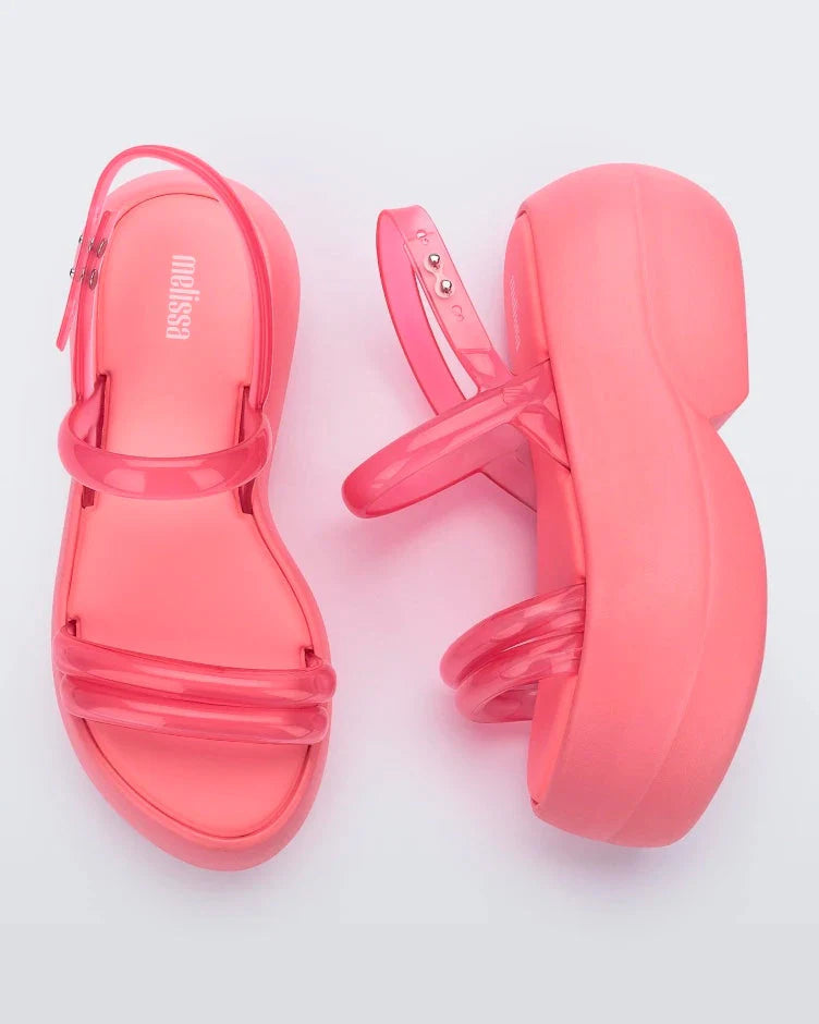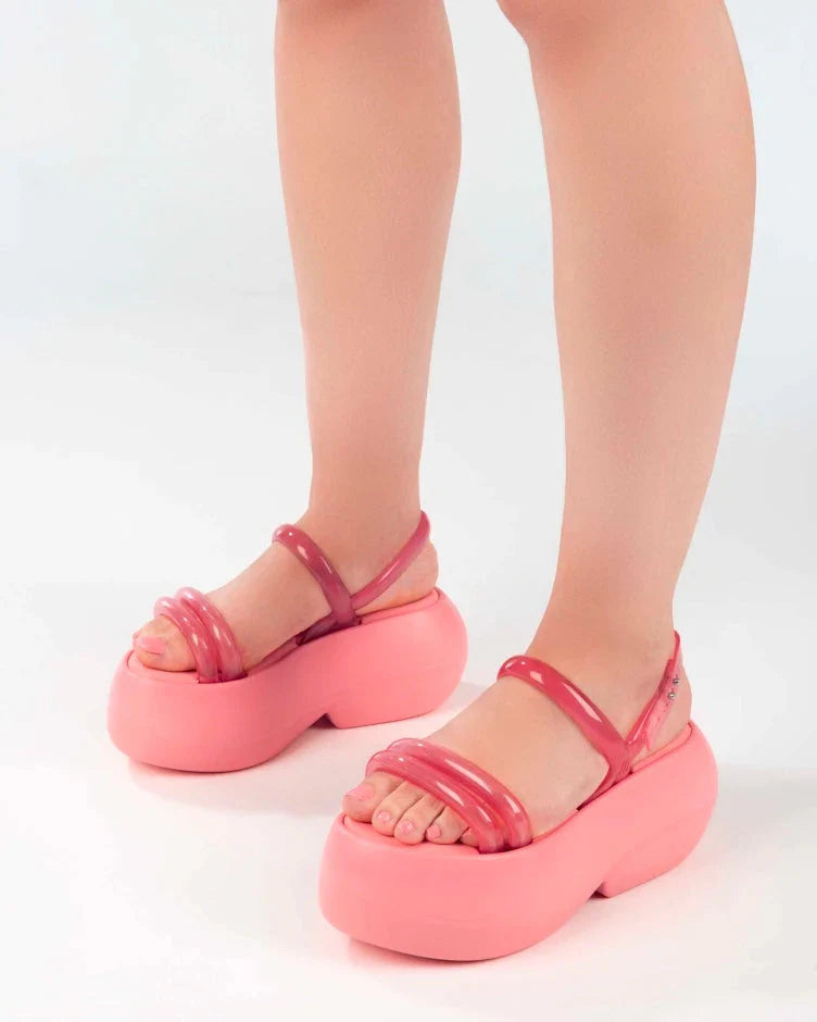 Bringing the purest Melissa DNA, the Melissa Airbubble collection represents expression and attitude. The Airbubble Platform works with volumes and tubular shapes, without neglecting Melissa's characteristic transparency. With an injected EVA sole, Grenflex insole, Melflex upper and pin closure, it guarantees plenty of comfort for any occasion.
