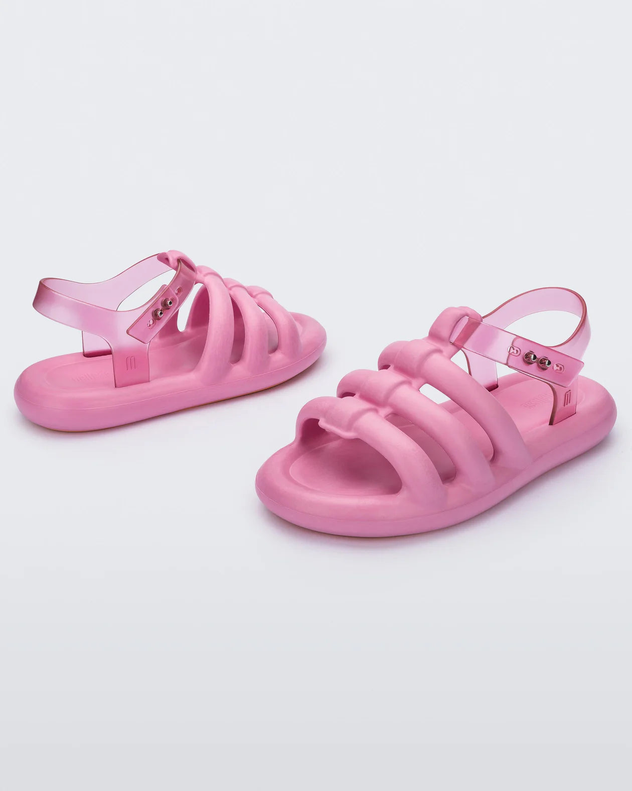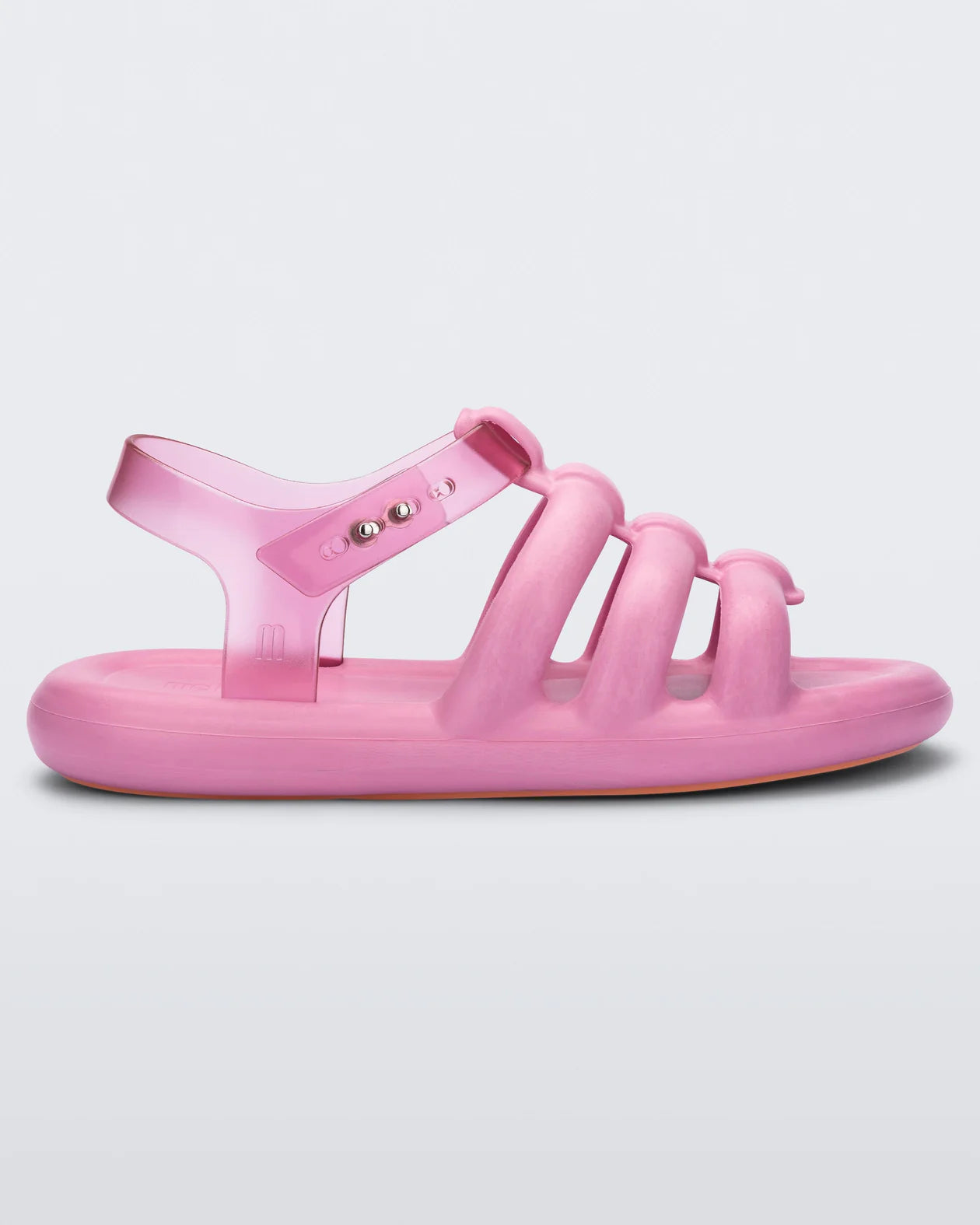 Melissa Freesherman has an irreverent design and is inspired by the puffer trend, bringing volume to the straps and sole. With a fisherman-style structure and references to the iconic Melissa Flox, the Freesherman is made from biobased EVA, in solid colors and transparent straps. Comfortable and casual, it has everything to steal the show in your warm looks.