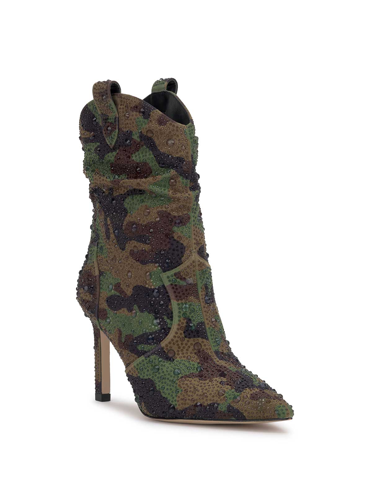 Turn heads with this glam-meets-Western ankle boot, designed to make a bold statement. Featuring a pointed... 17