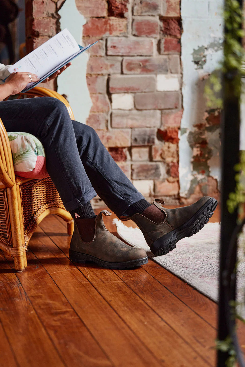 Our premium leather Chelsea boots are available for men in our famed Rustic brown color. The best lightweight boots for comfort around town, or protection when off-road. The boots feature an elastic side and are leather lined with a cushioned midsole for additional comfort.