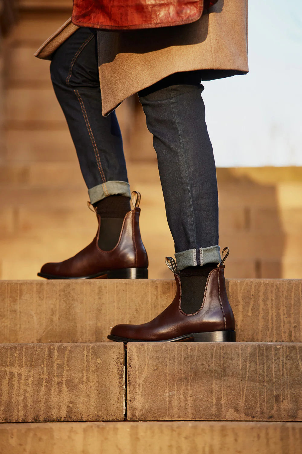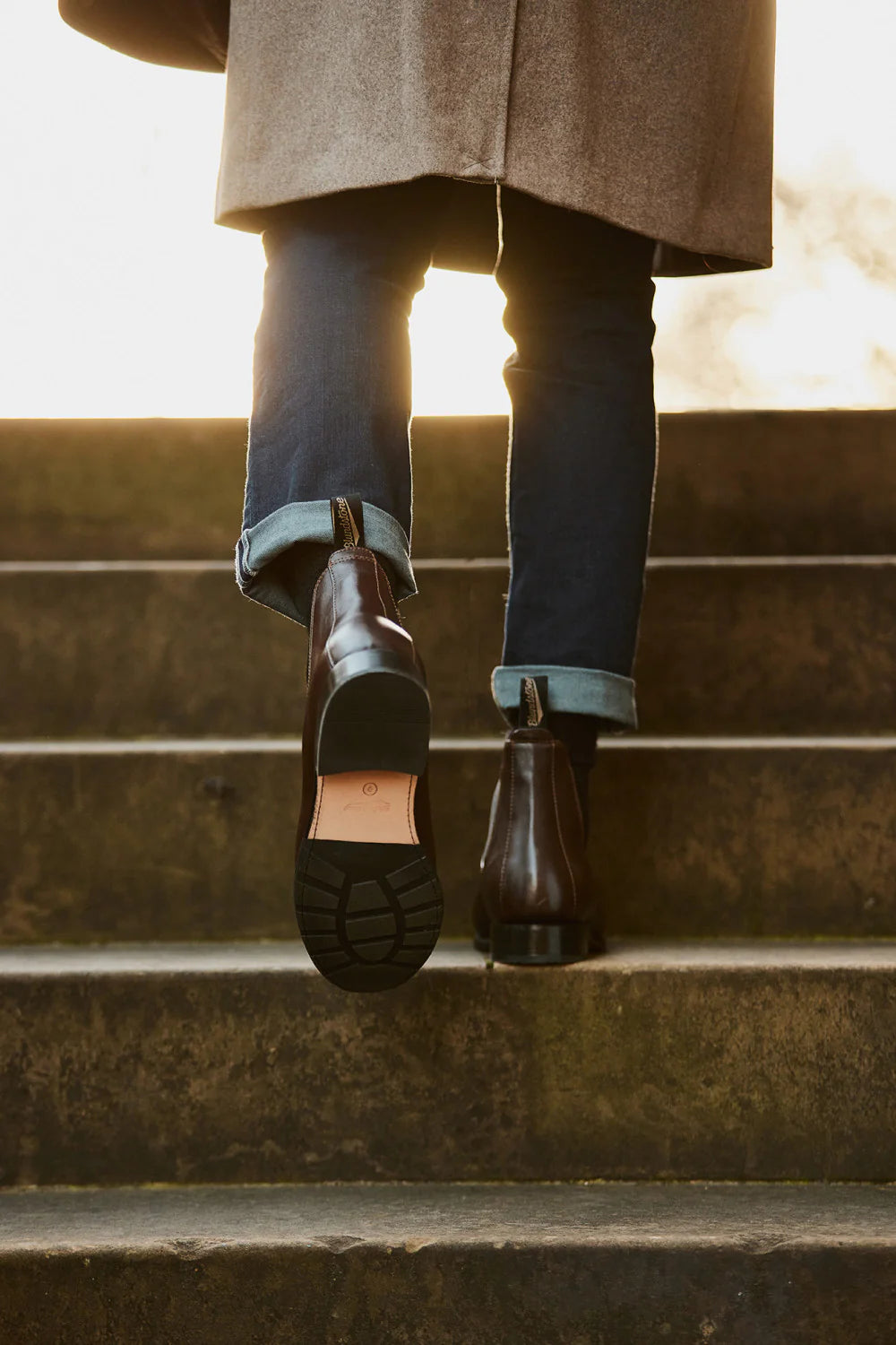 Hand-guided production stitches the leather sole and upper together, allowing the boots to be re-soled after long-time wear.