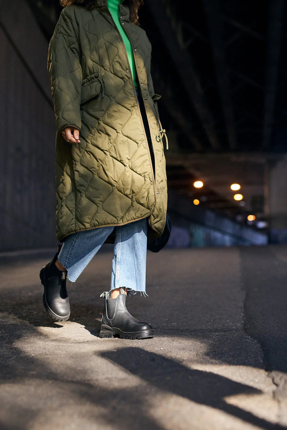 The Lug Boot sole’s deep grooves are designed specifically to increase traction, making the #2240 in premium black leather a sophisticated option that can handle any environment.