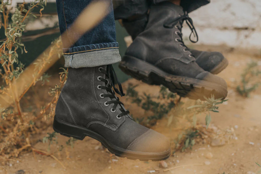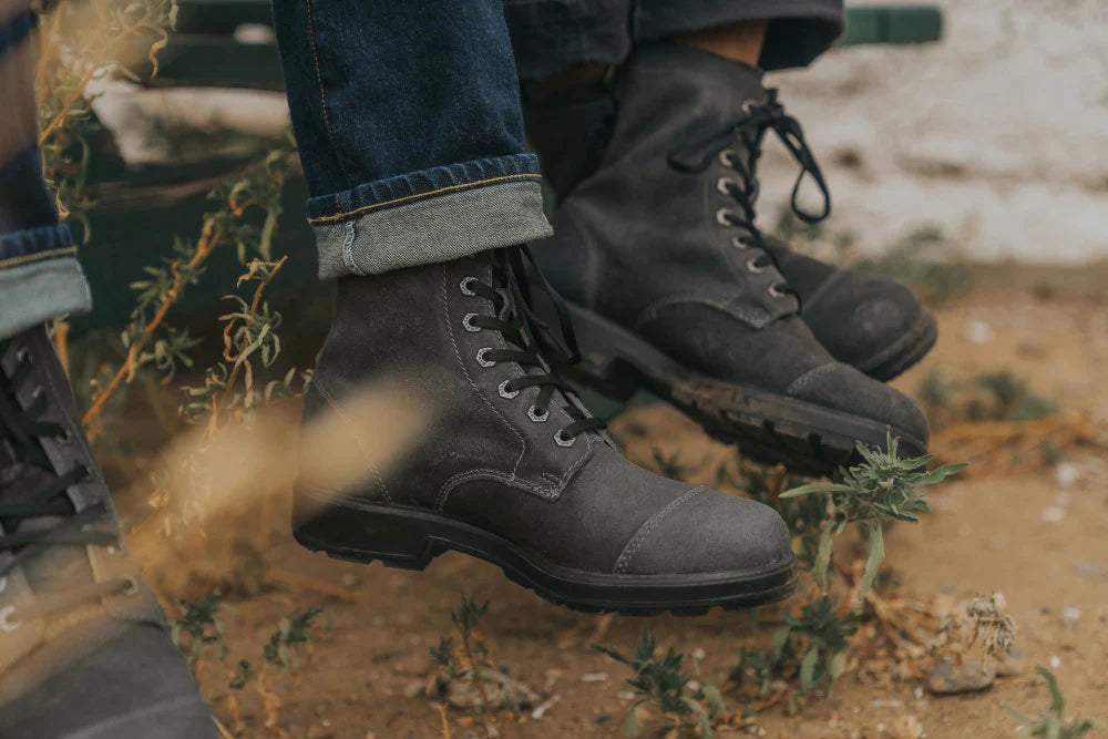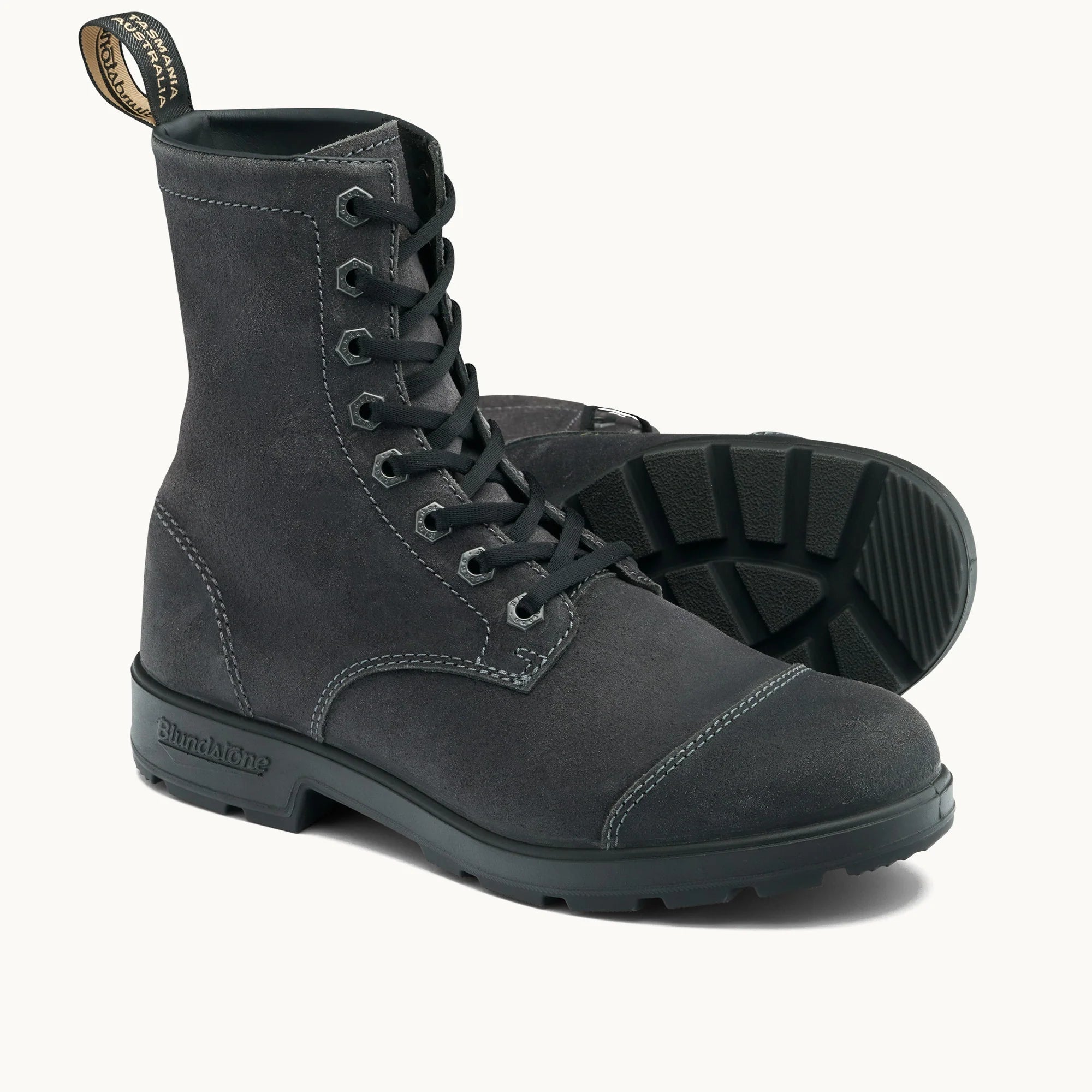 The #2530 8-inch lace-ups are a comfortable and stylish steel grey, with added height on the ankle and a hidden padded collar.