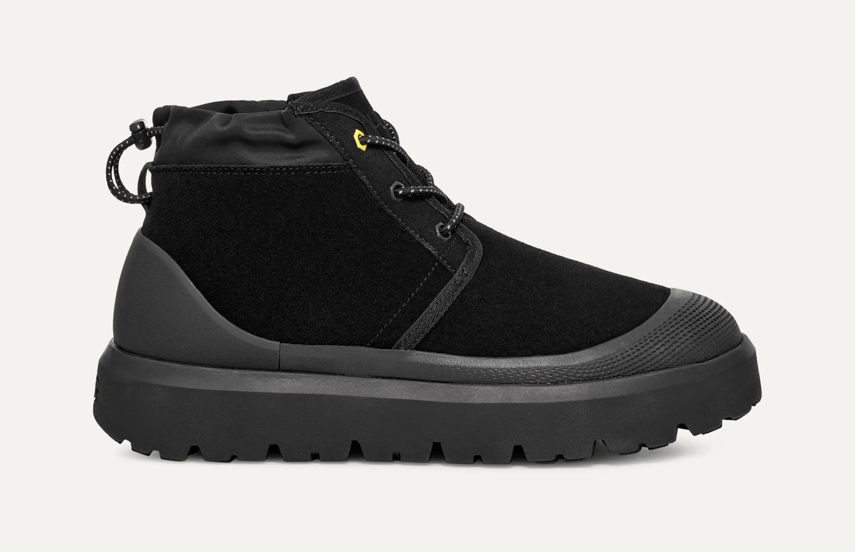 Our iconic heritage chukka, The Neumel, gets a weatherized upgrade. A timeless boot made of rich, waterproof suede, it's lined in our UGGplush™ upcycled wool blend and finished with an outsole made from renewable, rainwater-nourished sugarcane for all-day cushioning and a signature Classic-like feel indoors or out. White Spider Rubber® outsole pods offer enhanced traction.