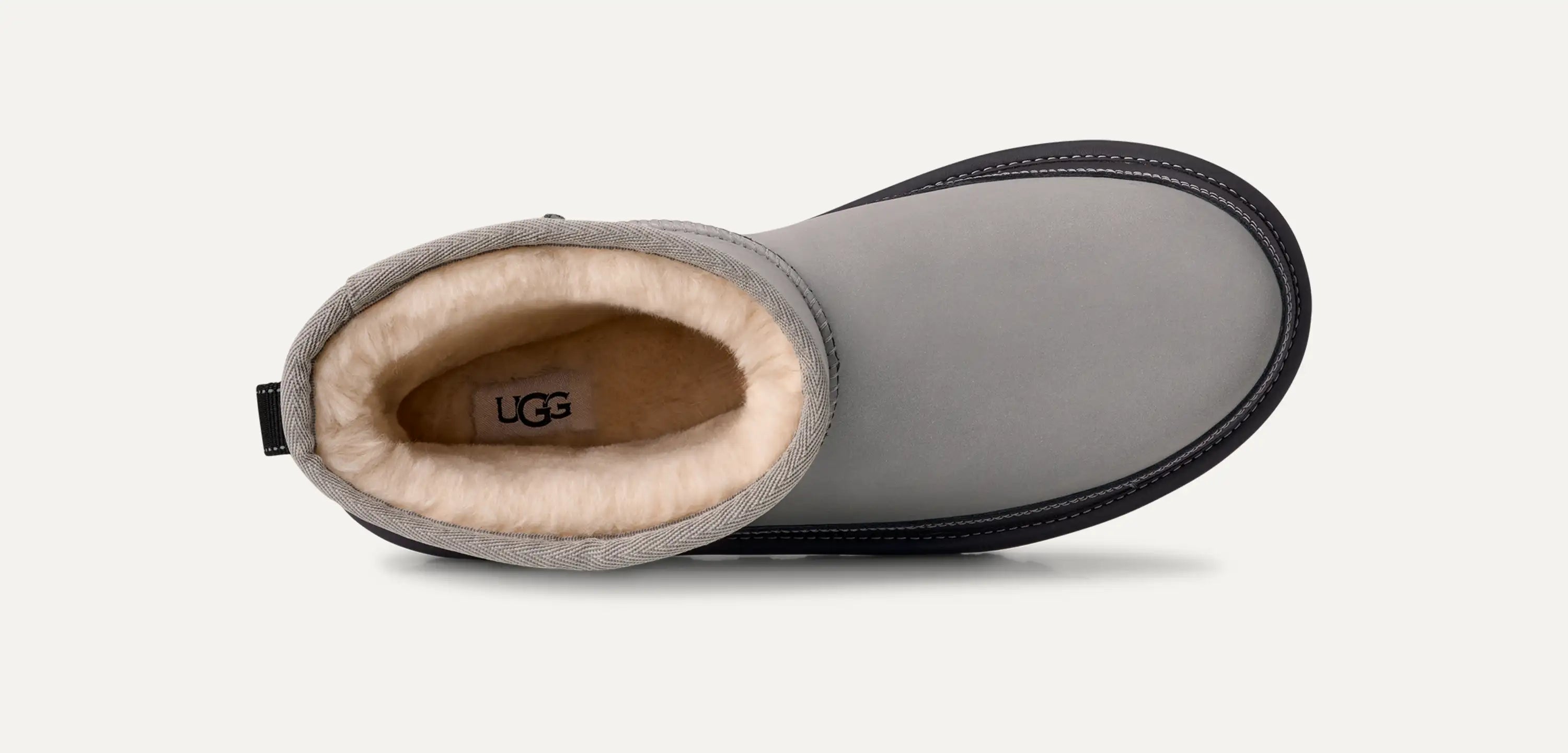 Classic, meet Contemporary. Contemporary, meet Classic. Two of our favorite elements combine in our Classic Mini Reflective. It features our soft UGGplush™ lining and insole and a supportive Vibram® outsole. Designed with the beloved shape of our Classic Boot, this iteration is crafted with an innovative reflective upper that makes a statement, even after dark.