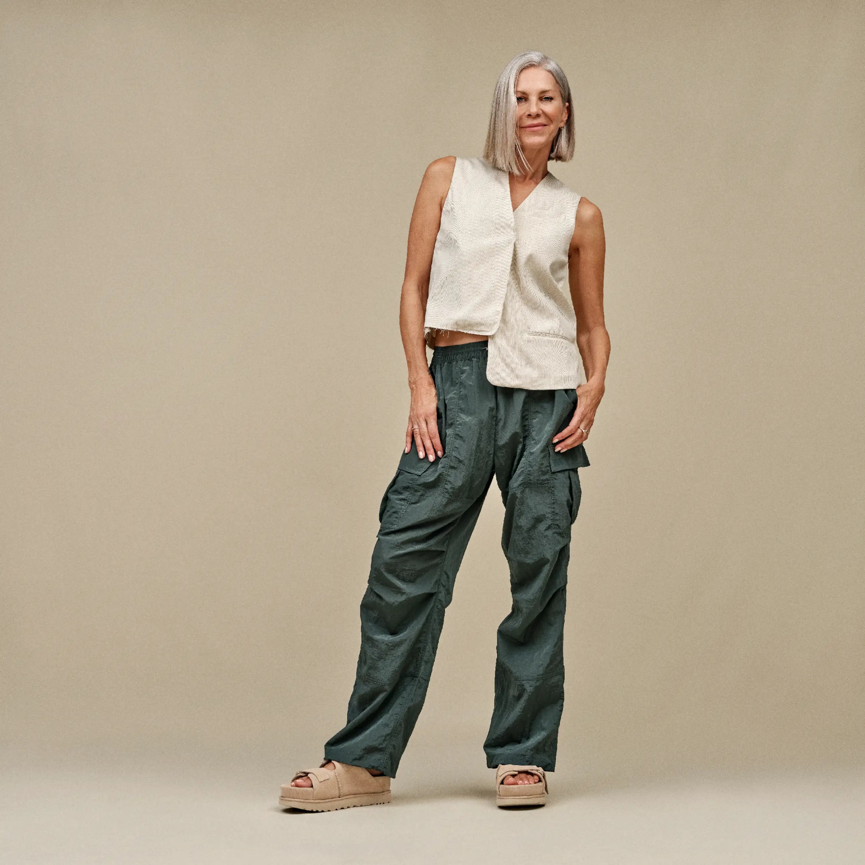 The pinnacle platform with effortless comfort. We designed the Goldenstar Hi Slide with a super-lightweight sugarcane EVA outsole that supports you through everything. The dual-density foam footbed feels luxe underfoot while our textile sock liner and mesh lining surround you in comfort. Adjust your fit with two straps on the padded suede upper. Finished with our signature Twin Seam and iconic binding.