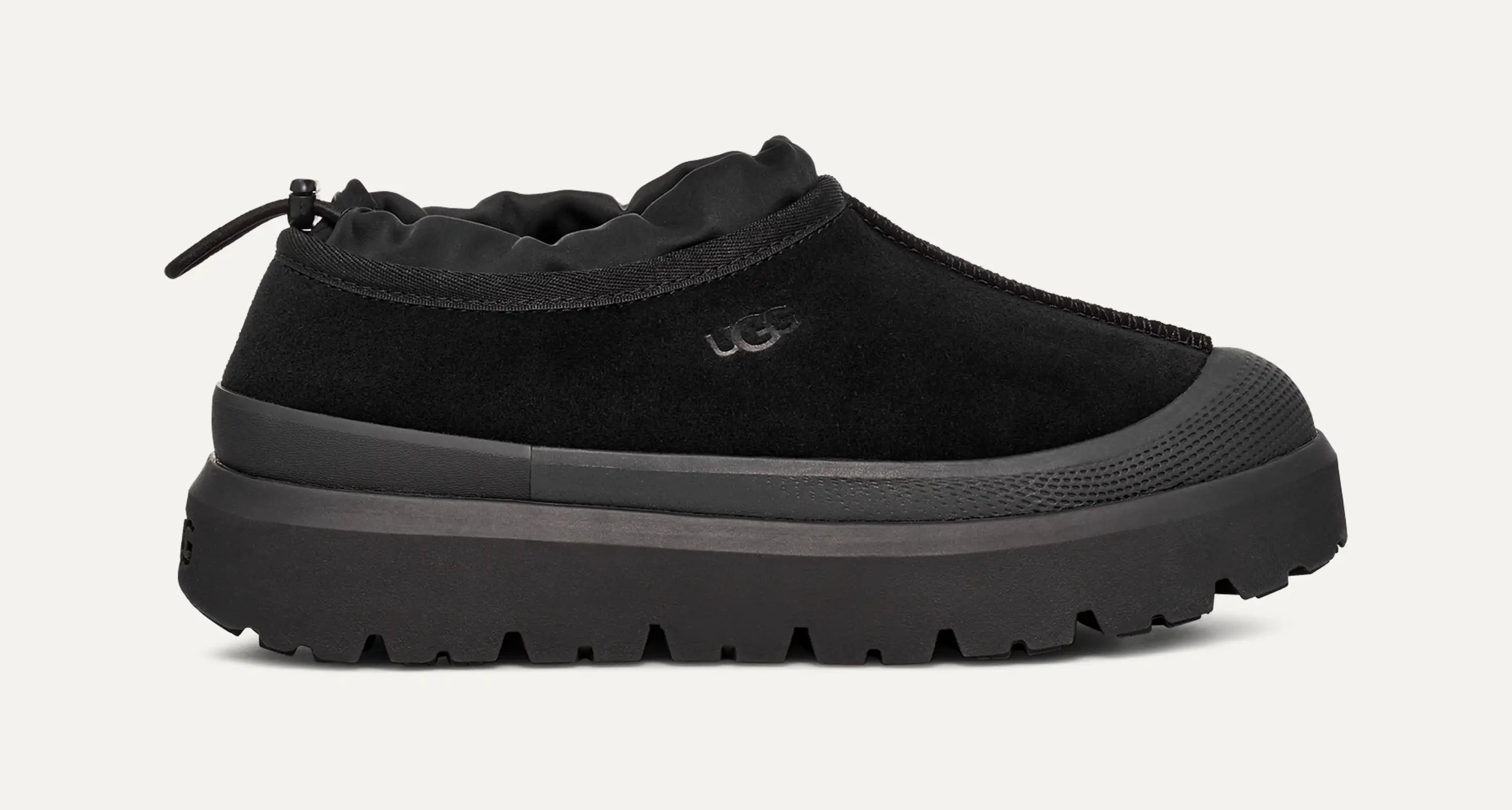 Who (and we can't stress this enough) wants to take a walk in the drizzle with us? We can always count on our Tasman Weather Hybrid to travel with us outdoors, even if its a little wet out there. Featuring waterproof suede and seam-sealed construction as well as our cozy UGGplush™ upcycled wool lining, our Tasman Weather Hybrid offers a light, slipper feel with an easy slip-on silhouette. The outsole is made from renewable, rainwater-nourished sugarcane and features a permanent galosh for wet conditions.