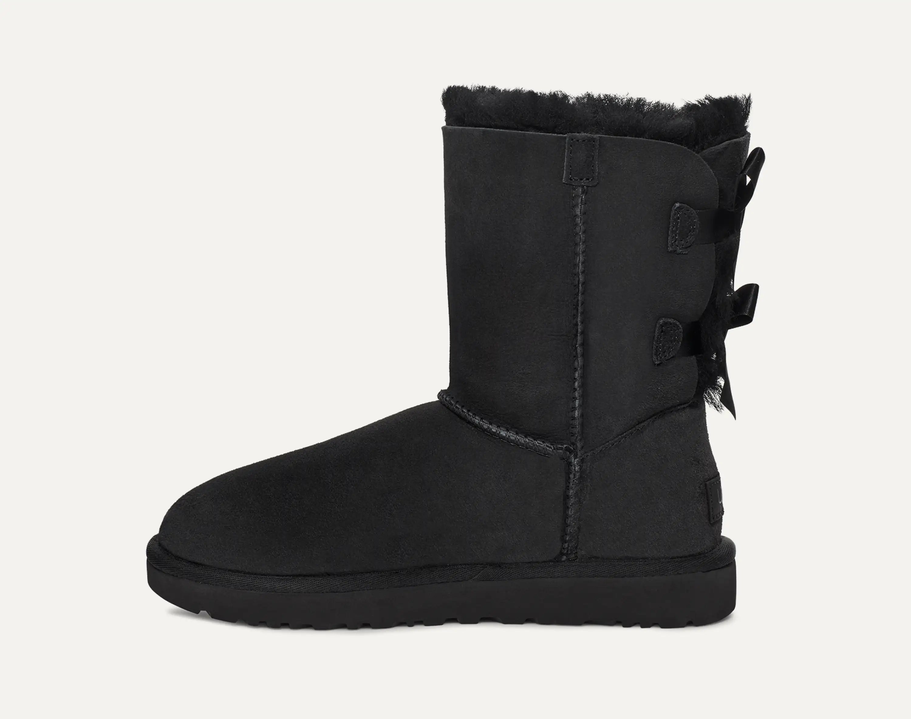 We added silky bows to our iconic sheepskin boot for a sweet, feminine look that's always been a fan fave. Crafted with soft sheepskin, this versatile boot features a durable, ultra-lightweight sole. The pretreated sheepskin upper repels moisture and protects against stains. These pull on boots are available in a range of neutral colors including black, browns, and greys.