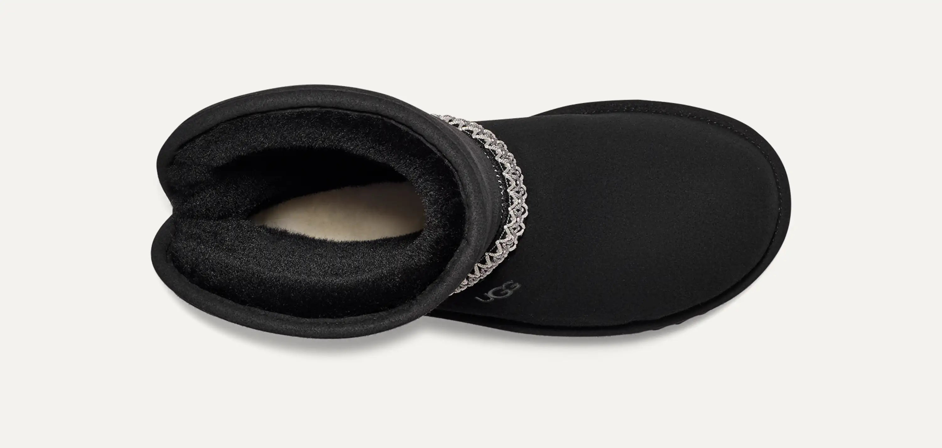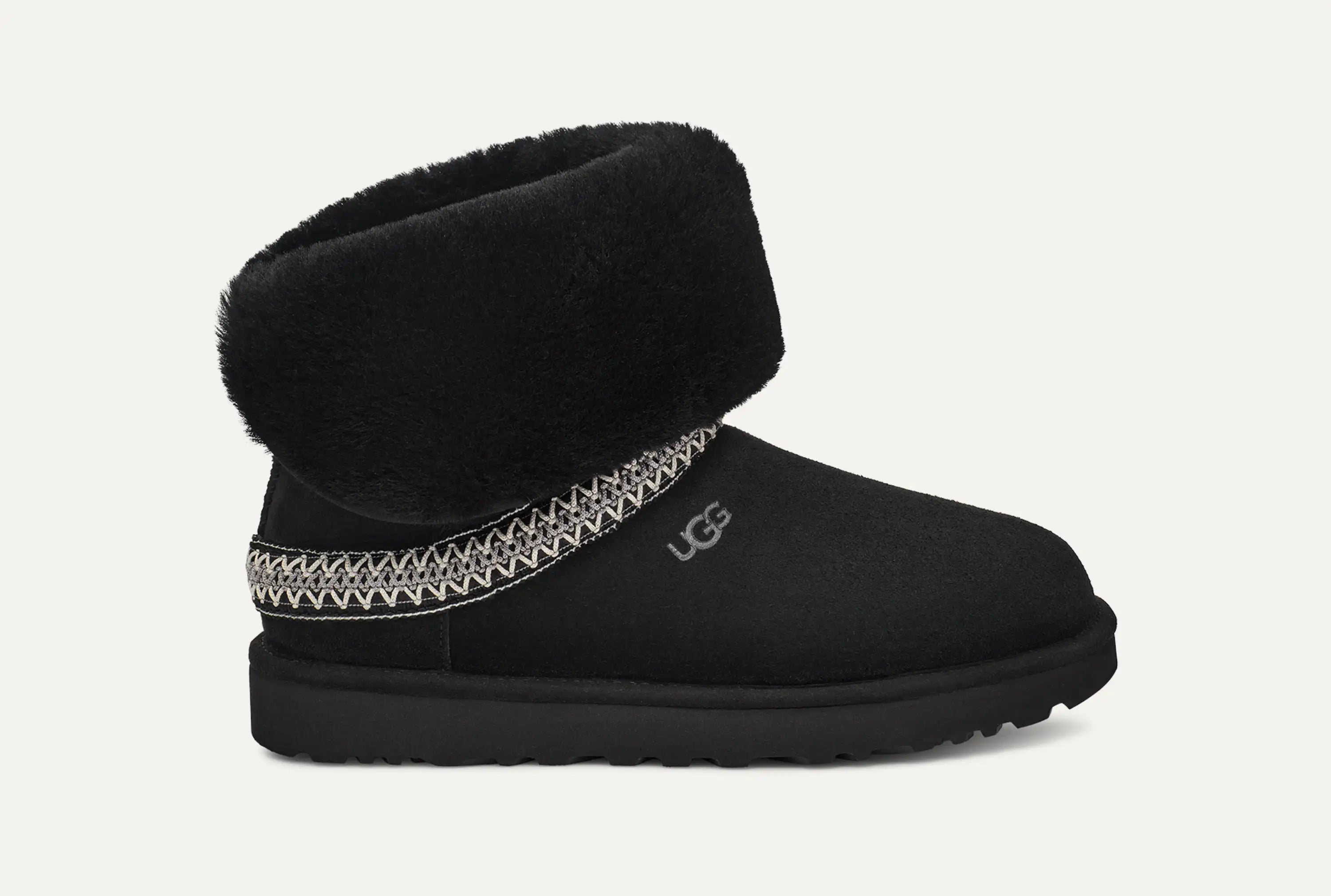 We should warn you, our Classic Short Crescent boots are so cozy-chic, they might replace all of your other boots, shoes, and slippers. Crafted with Twinface sheepskin and lined with UGGplush™, slipping into these is like sinking into an alternate fleece-filled reality. The curved shaft can be folded down while still showing off the exterior UGGbraid™ or worn tall for chillier days. Complete with a lightweight sugarcane EVA outsole and microsuede binding.