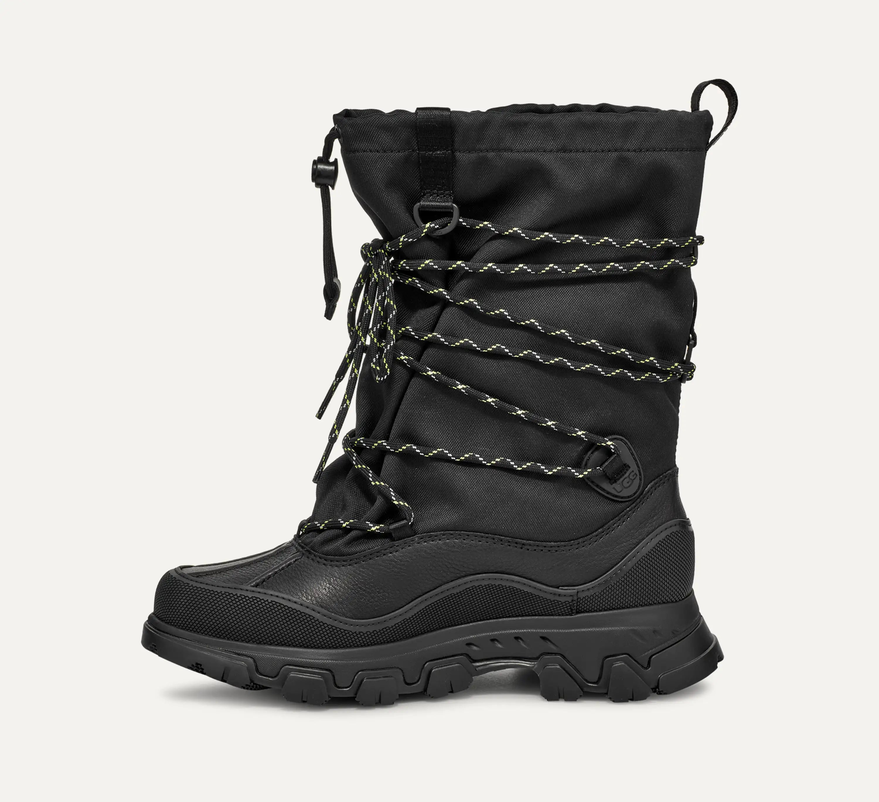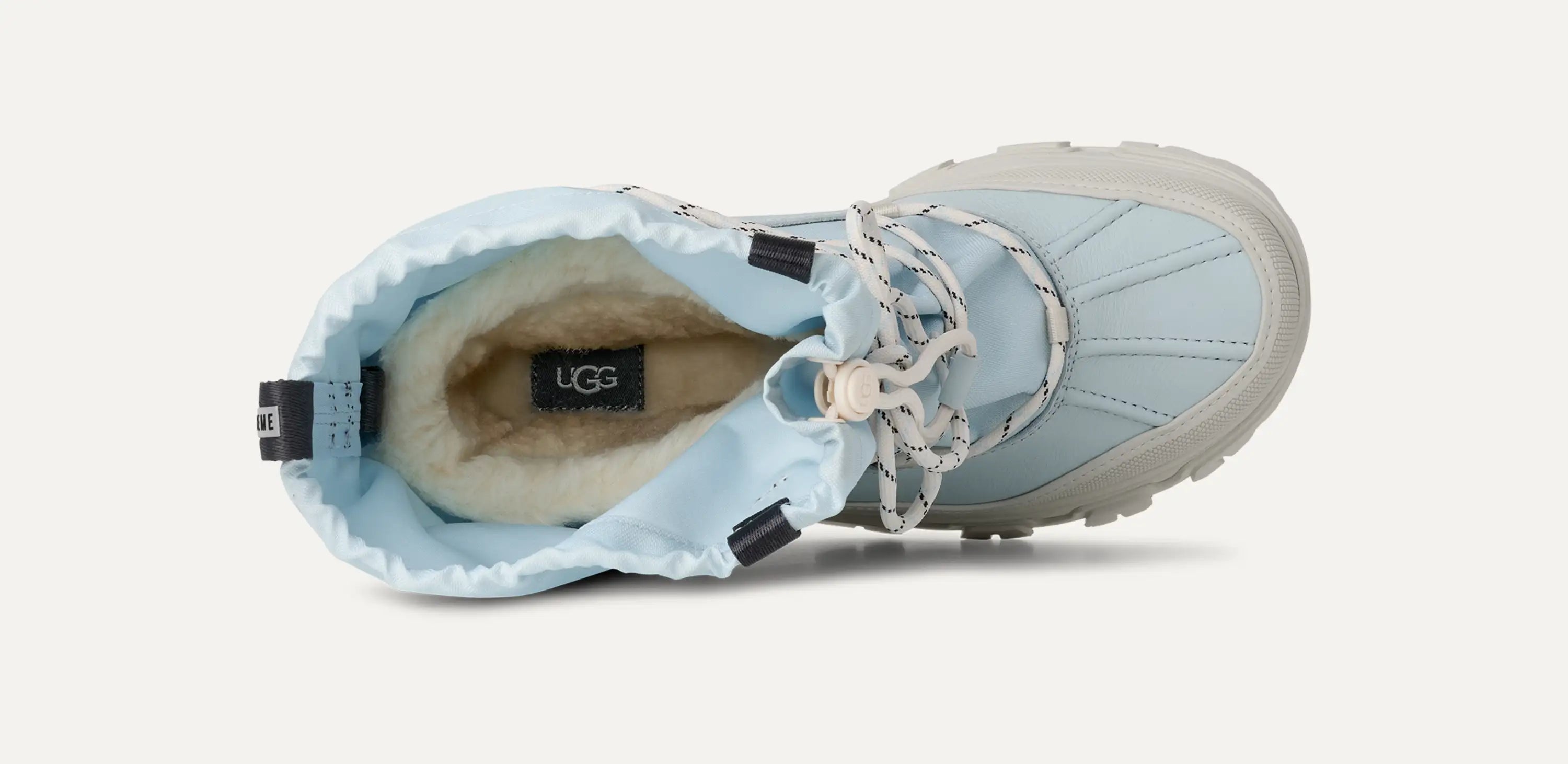 Okay, winter—go off. We welcome your gusts, your misty mornings, your frosty temps. No, seriously, we're ready for you. Well, the MetroPeak Boot sure is. The MetroPeak is our ultra-fab, ultra-tech, all-new winter boot designed to get you where and when you need to go. MetroPeak stands for hyper-versatility. You are getting three boots in one: Wear it up, slouched down, or lace it your way — the MetroPeak delivers tech and style in one beautiful boot. It has an interior bootie lined with UGGplush™ to keep you warm and a waterproof lower exterior to block out the elements. This boot is all about versatile function. It's rated to -32ºC, so you can stick to your schedule when Mother Nature is showing up and showing out.