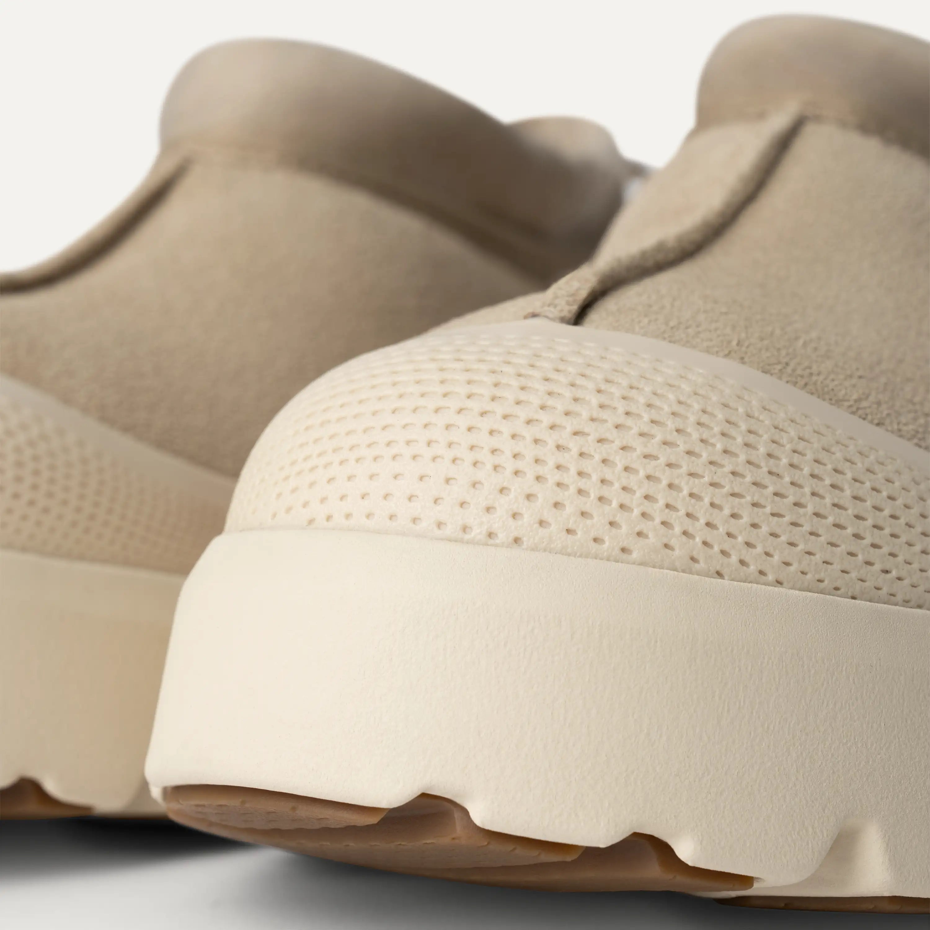 Who (and we can't stress this enough) wants to take a walk in the drizzle with us? We can always count on our Tasman Weather Hybrid to travel with us outdoors, even if its a little wet out there. Featuring waterproof suede and seam-sealed construction as well as our cozy UGGplush™ upcycled wool lining, our Tasman Weather Hybrid offers a light, slipper feel with an easy slip-on silhouette. The outsole is made from renewable, rainwater-nourished sugarcane and features a permanent galosh for wet conditions.