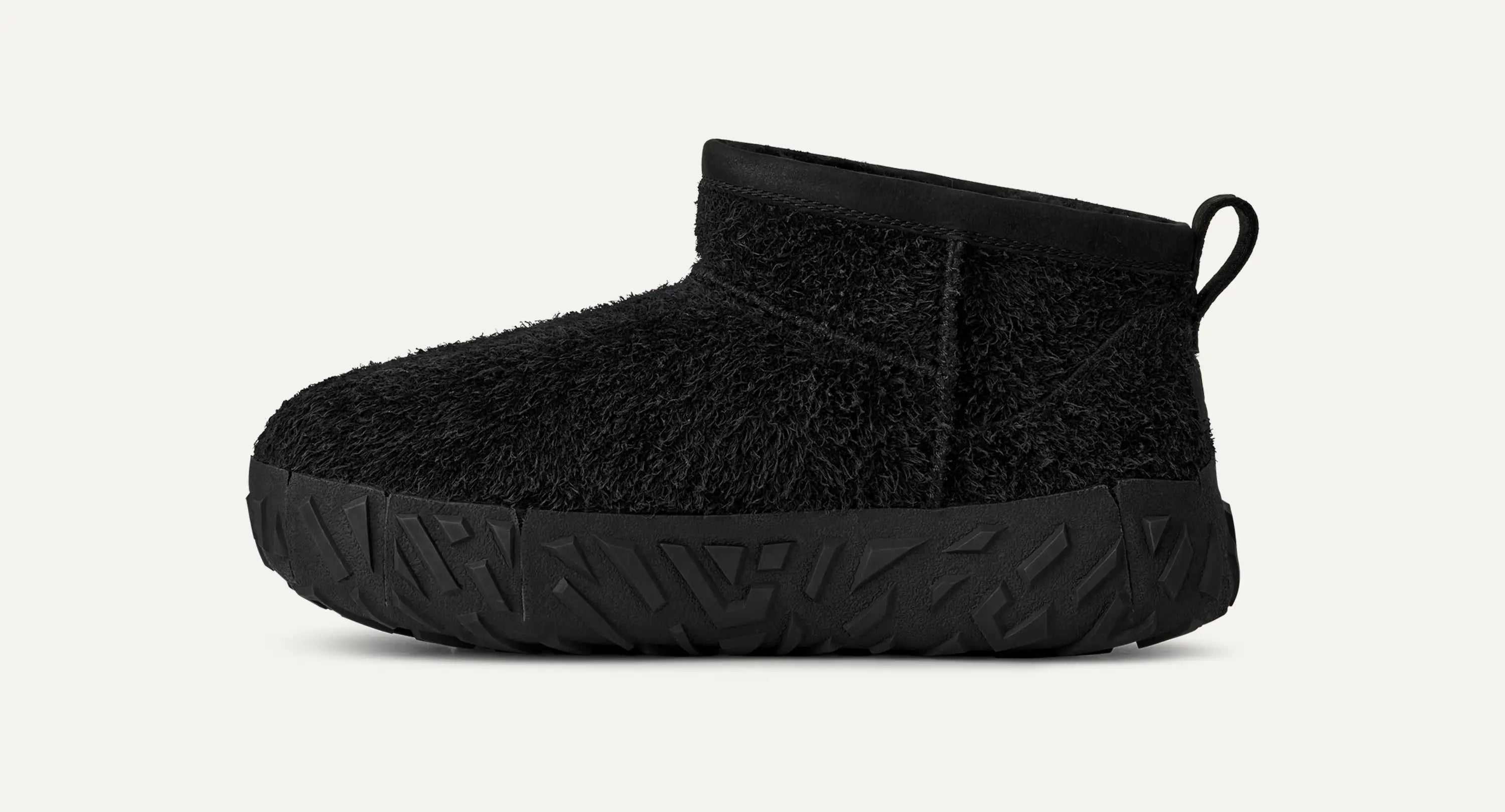Our Classic Ultra Mini Wrap Tech takes one of our modern Classics into a new era. With the same shorter shaft and Twin Seam details you love in the Classic Ultra Mini, this iteration features a shaggy suede upper and a wrapped Vibram® outsole with a raw-edged finish. Equally bold and comfortable, this boot surrounds you in our signature curly UGGplush™ lining and insole and offers all-day support with the lightweight sugarcane EVA midsole.