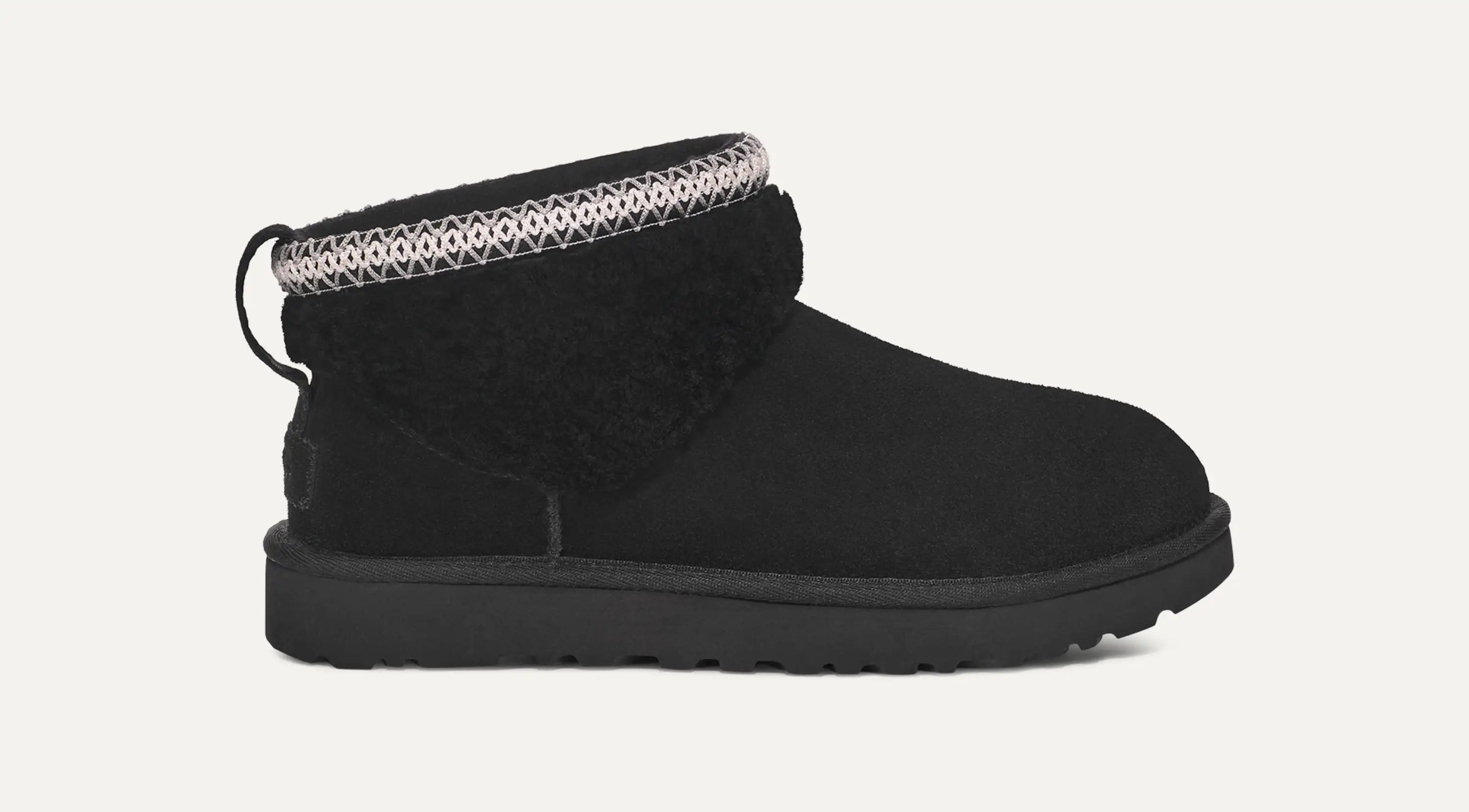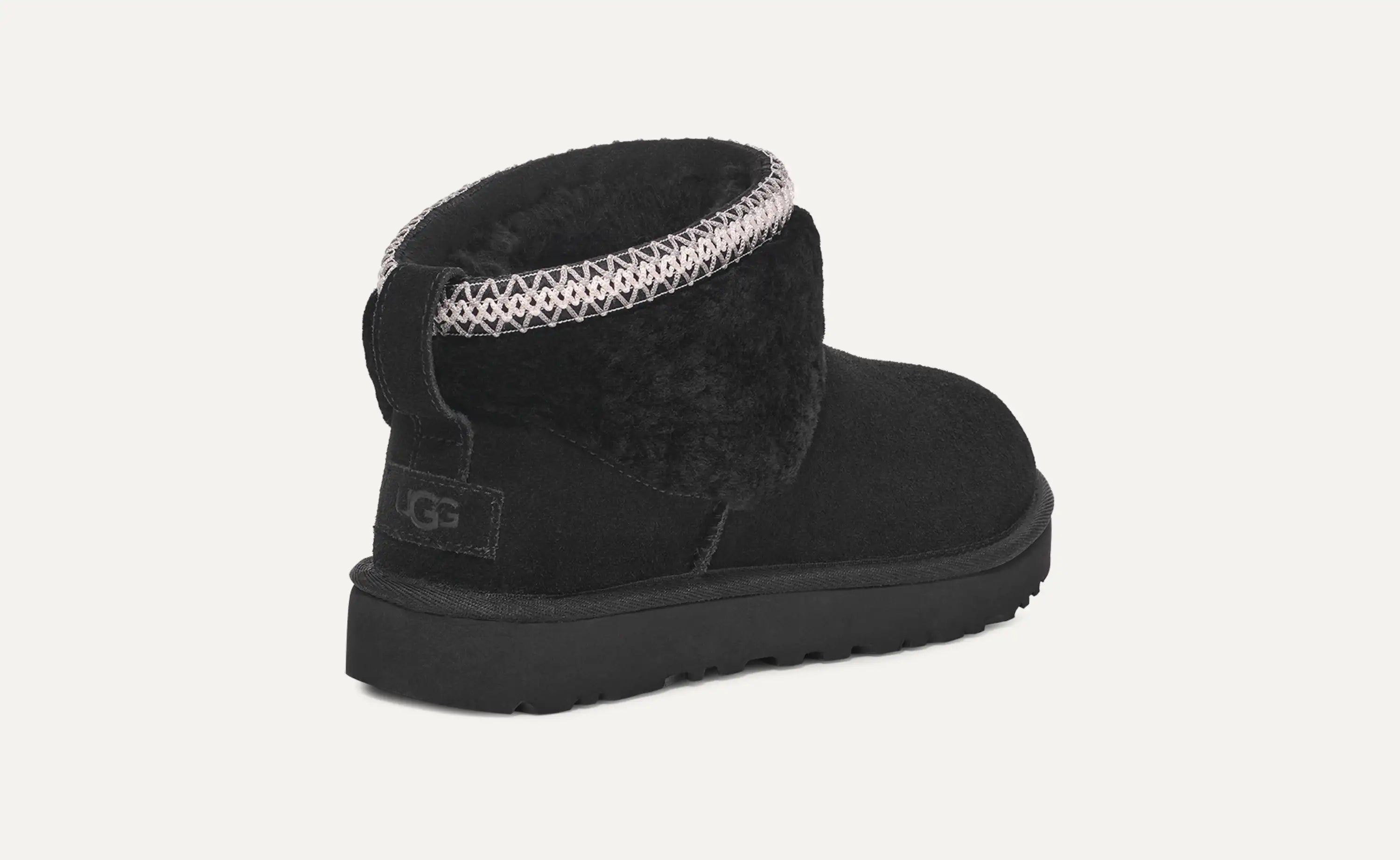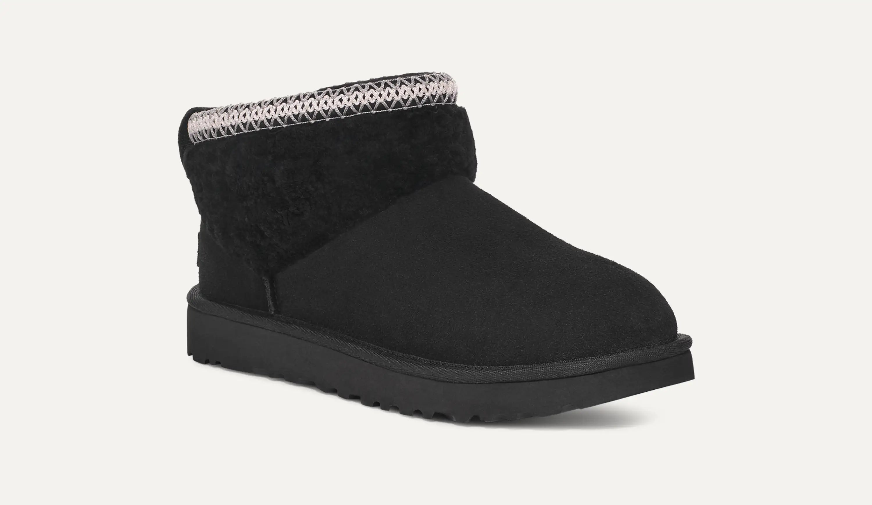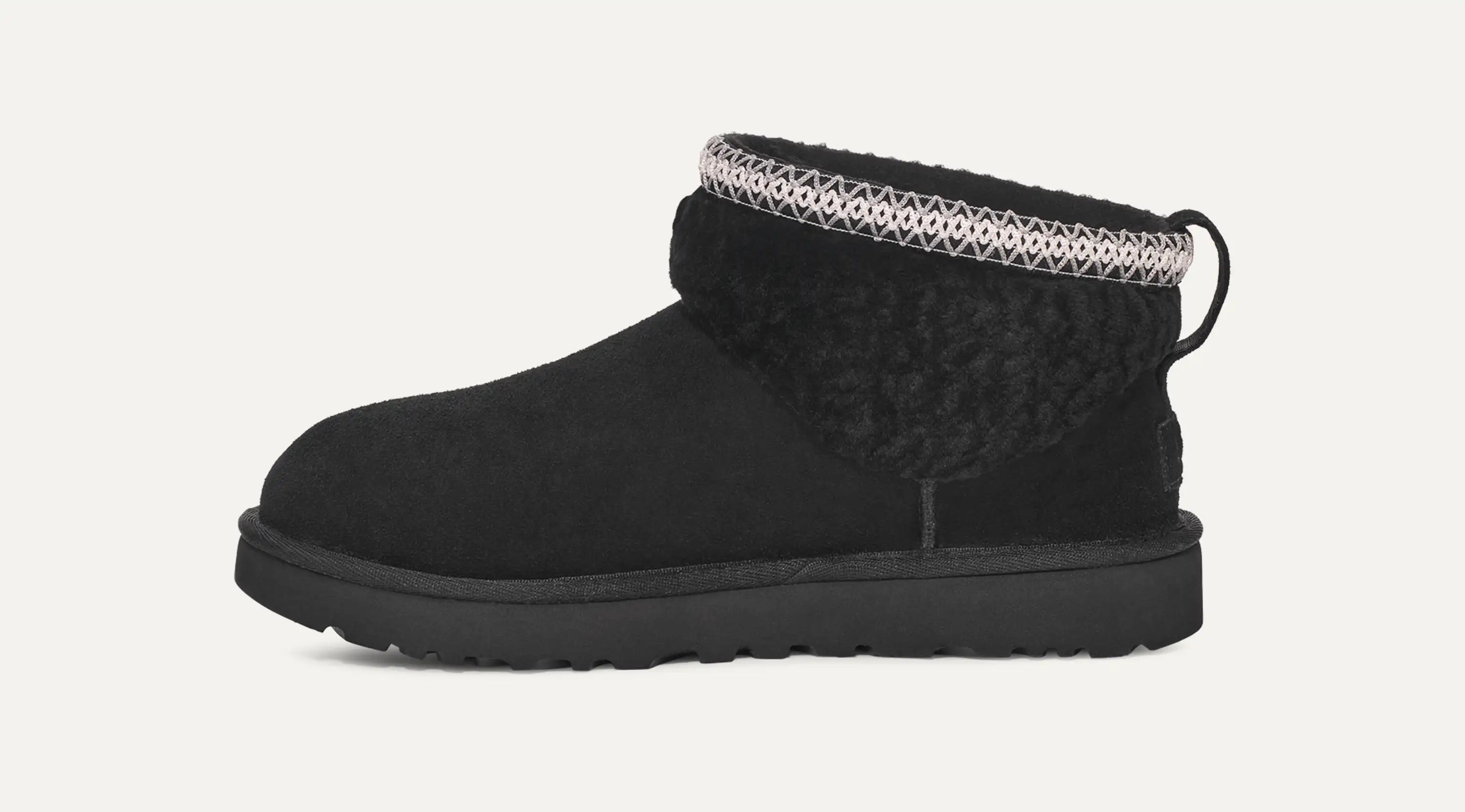 A textured take on our icon, our Classic Ultra Mini Maxi Curly rediscovers coziness with a curly sheepskin upper. Trimmed with our heritage UGGbraid™ and built upon our Classic outsole, these boots promise the same cocoon-like supreme comfort you love from UGG®.
