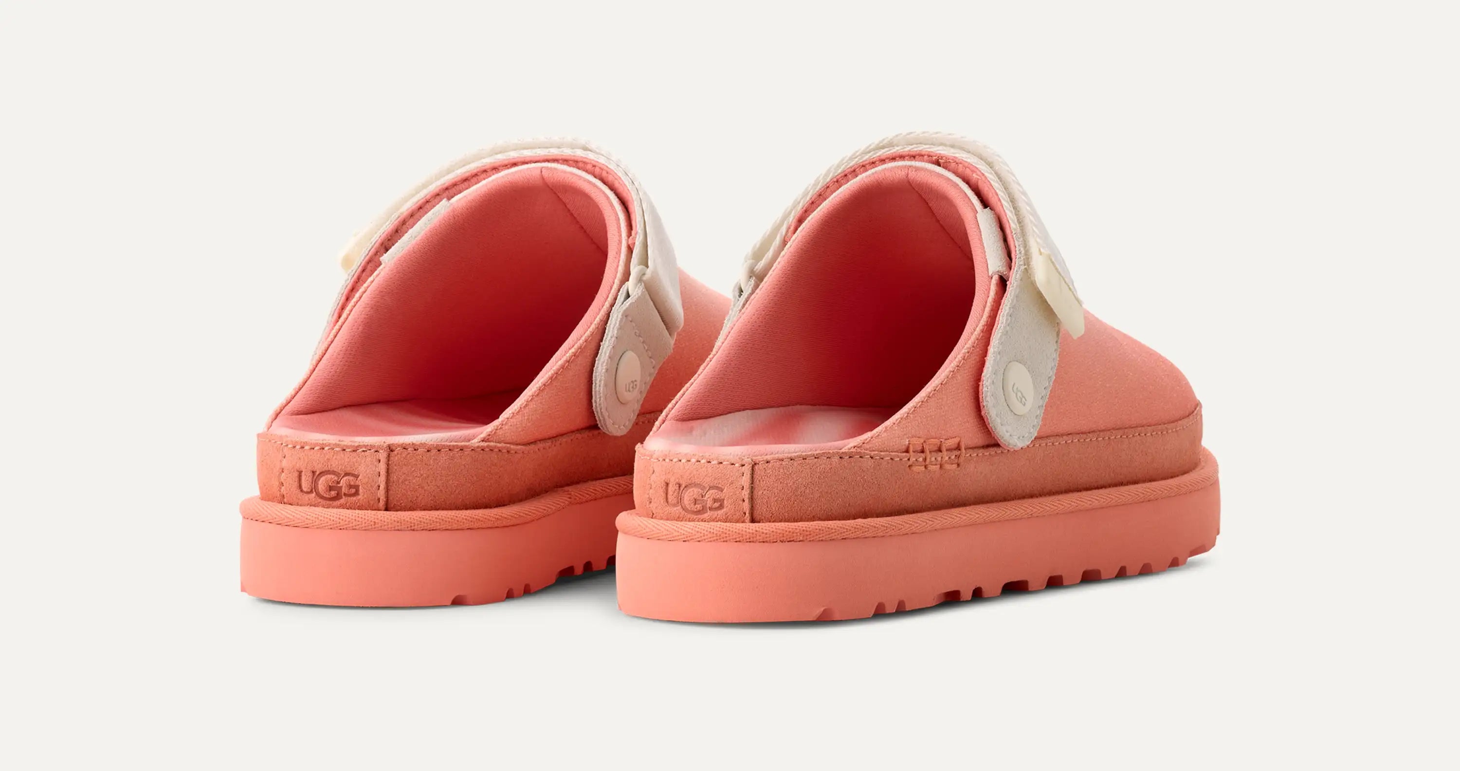 • Regenerative Cotton Canvas sourced from certified farms that practice regenerative agriculture, TPU strap end with The UGG® logo, Webbing heel strap