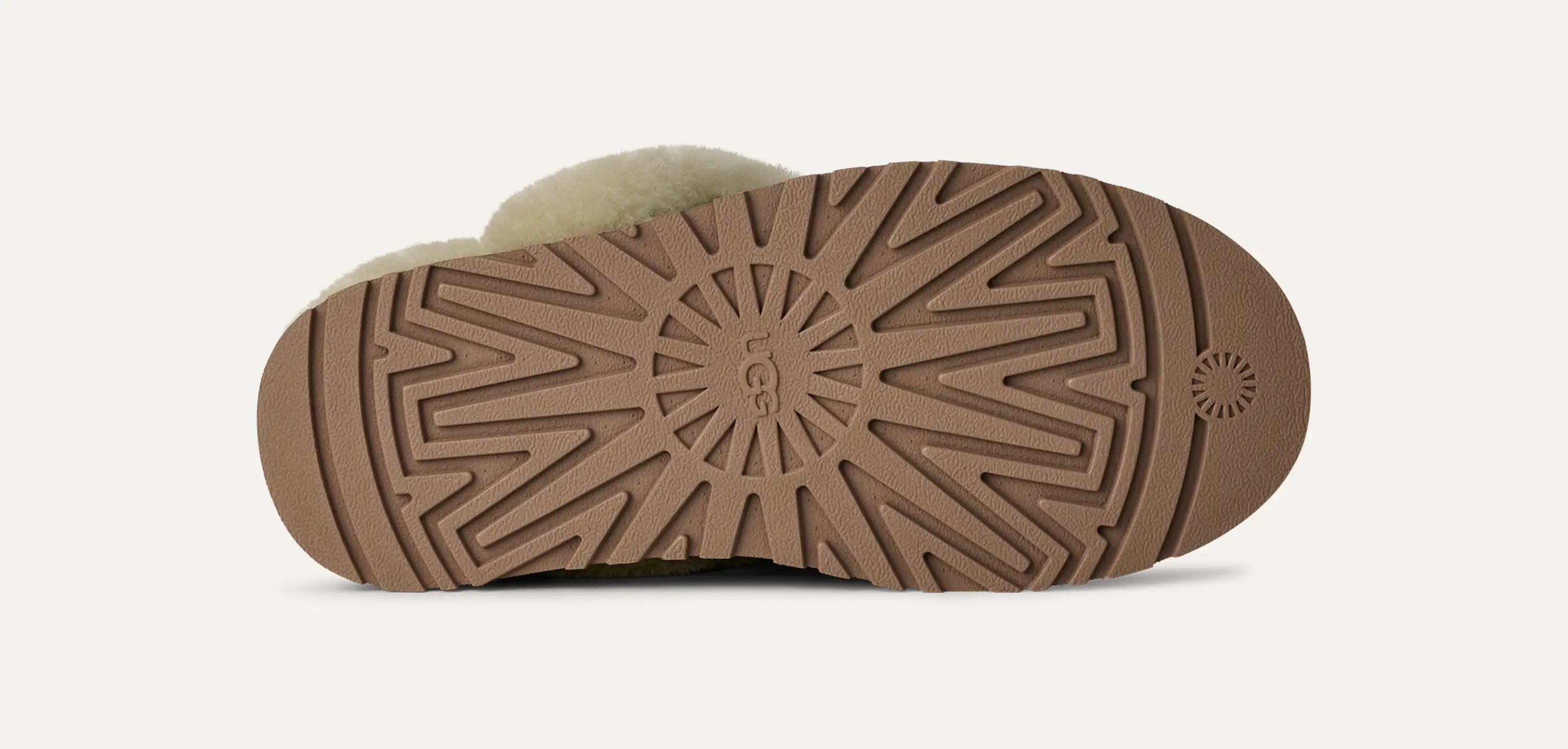 Features & Benefits Sugarcane EVA™ UGGplush Lining Details Our iconic Neumel heritage style is crafted with Twinface sheepskin that originates from farms that practice regenerative agriculture, which helps restore soil, encourages wildlife diversity, captures carbon in the ground, and preserves the land for future...