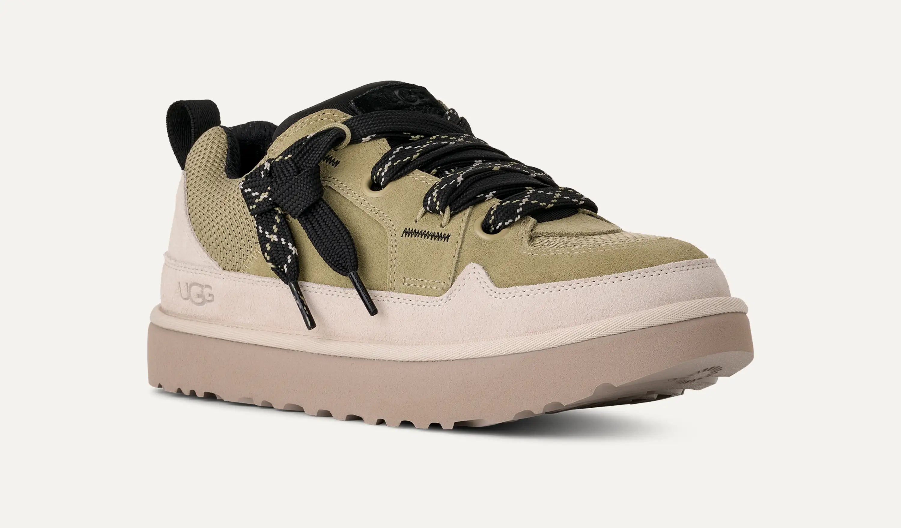 With the ease of a sneaker and the comfort of a slipper, our Lo Lowmel is all about impeccable vibes. ​This newcomer to the Lowmel family features a lower profile that begs for baggy jeans, '90s jams, and seaside hangs. The upper features a textured mix of genuine suede and recycled ballistic canvas mesh, giving the quintessential sneaker style. On the bottom, you'll find our springy sugarcane EVA outsole that offers signature UGG® comfort and makes these feel extra light on the foot.