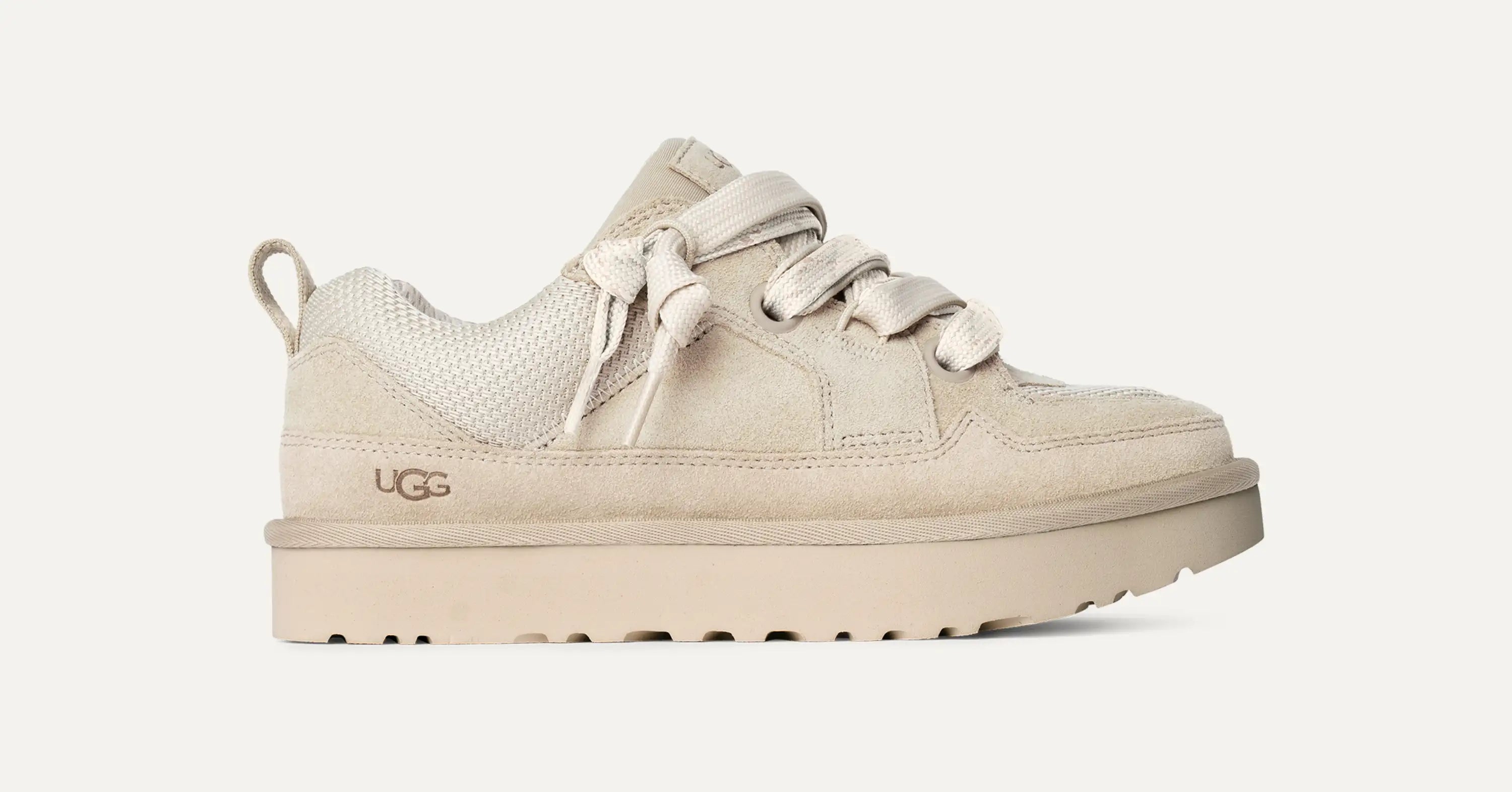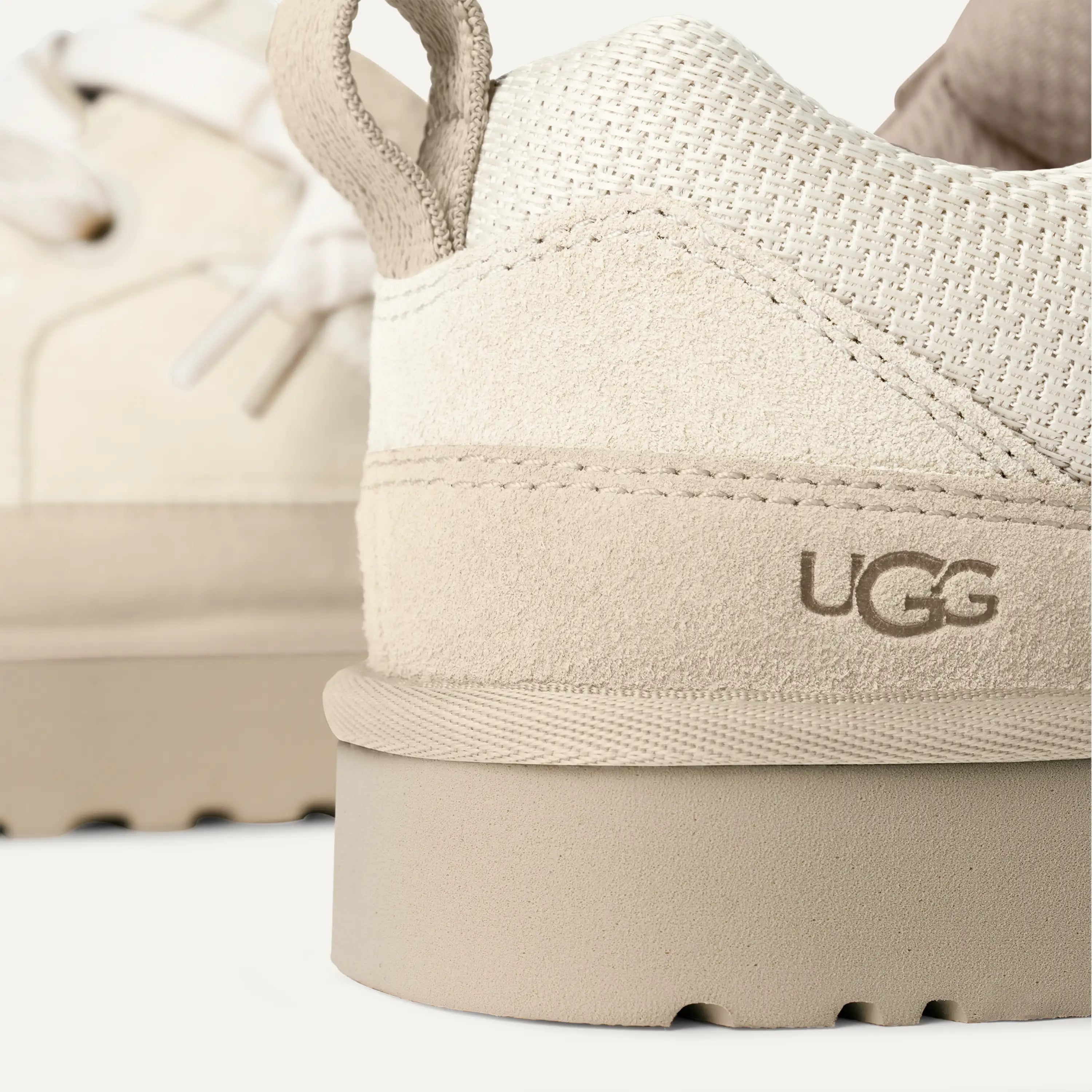 With the ease of a sneaker and the comfort of a slipper, our Lo Lowmel is all about impeccable vibes. ​This newcomer to the Lowmel family features a lower profile that begs for baggy jeans, '90s jams, and seaside hangs. The upper features a textured mix of genuine suede and recycled ballistic canvas mesh, giving the quintessential sneaker style. On the bottom, you'll find our springy sugarcane EVA outsole that offers signature UGG® comfort and makes these feel extra light on the foot.
