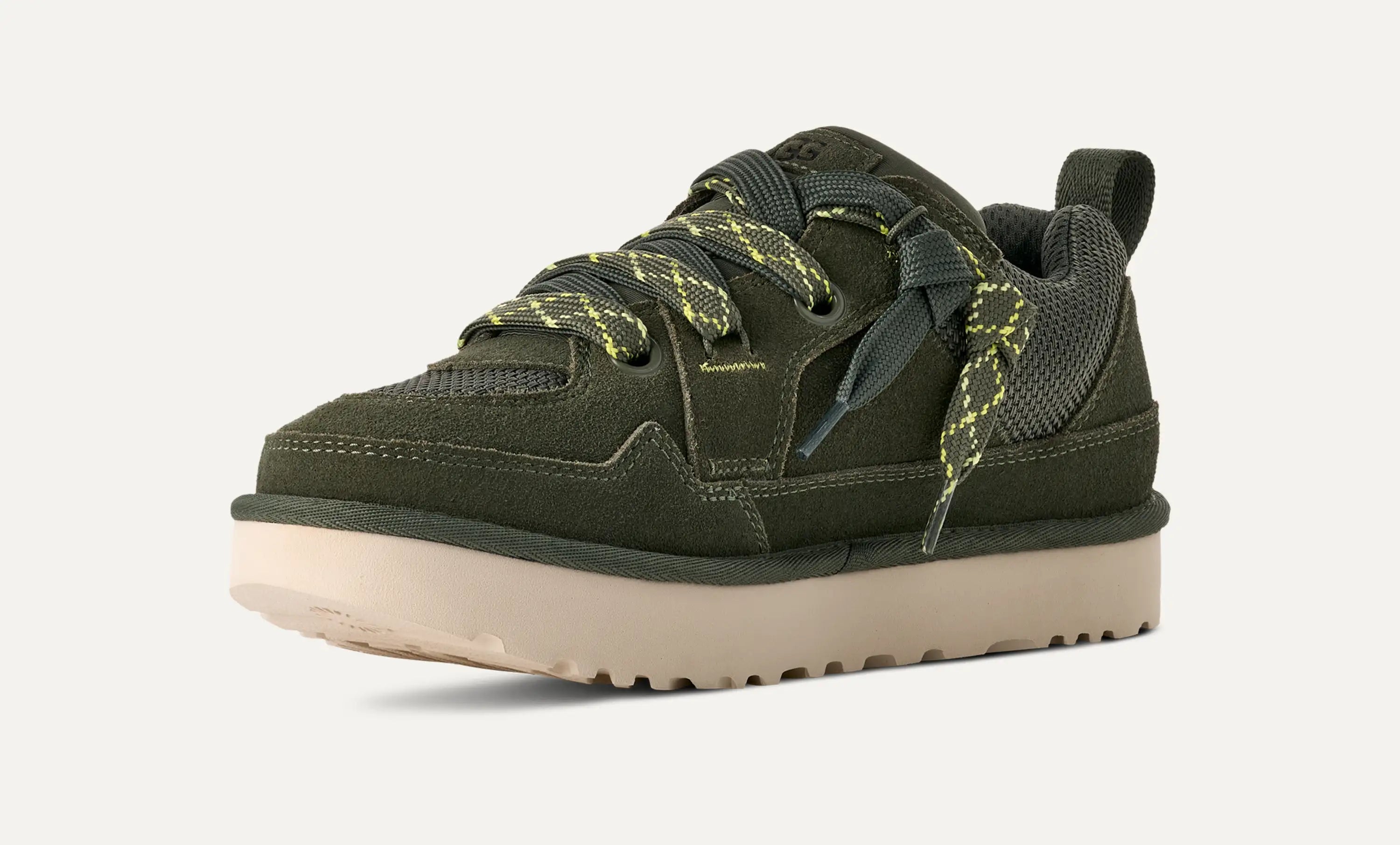 With the ease of a sneaker and the comfort of a slipper, our Lo Lowmel is all about impeccable vibes. ​This newcomer to the Lowmel family features a lower profile that begs for baggy jeans, '90s jams, and seaside hangs. The upper features a textured mix of genuine suede and recycled ballistic canvas mesh, giving the quintessential sneaker style. On the bottom, you'll find our springy sugarcane EVA outsole that offers signature UGG® comfort and makes these feel extra light on the foot.