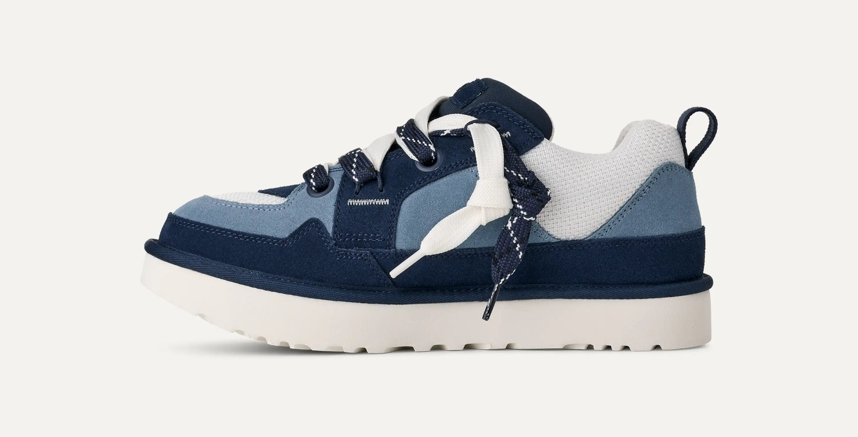With the ease of a sneaker and the comfort of a slipper, our Lo Lowmel is all about impeccable vibes. ​This newcomer to the Lowmel family features a lower profile that begs for baggy jeans, '90s jams, and seaside hangs. The upper features a textured mix of genuine suede and recycled ballistic canvas mesh, giving the quintessential sneaker style. On the bottom, you'll find our springy sugarcane EVA outsole that offers signature UGG® comfort and makes these feel extra light on the foot.