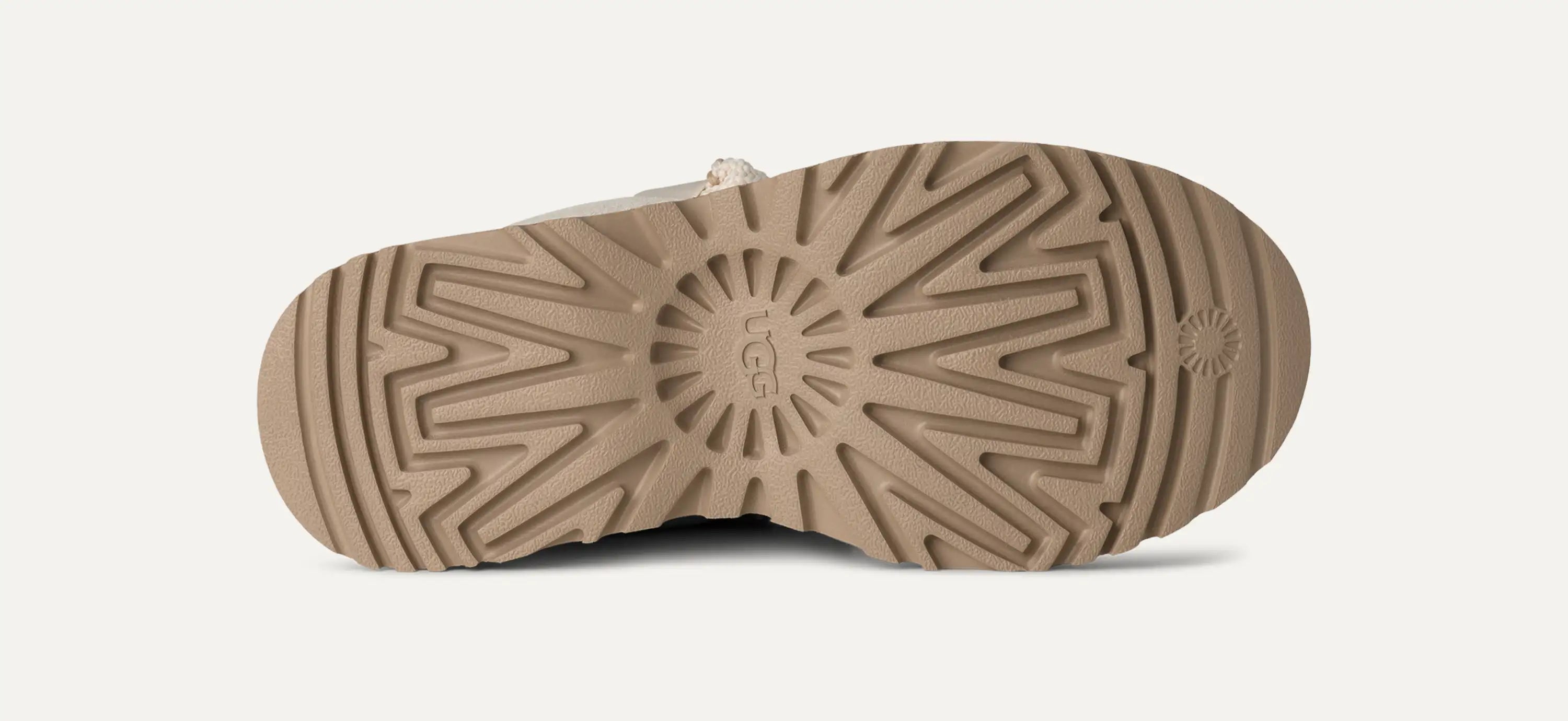 Features & Benefits Sugarcane EVA™ UGGplush Lining Details Our iconic Neumel heritage style is crafted with Twinface sheepskin that originates from farms that practice regenerative agriculture, which helps restore soil, encourages wildlife diversity, captures carbon in the ground, and preserves the land for future...