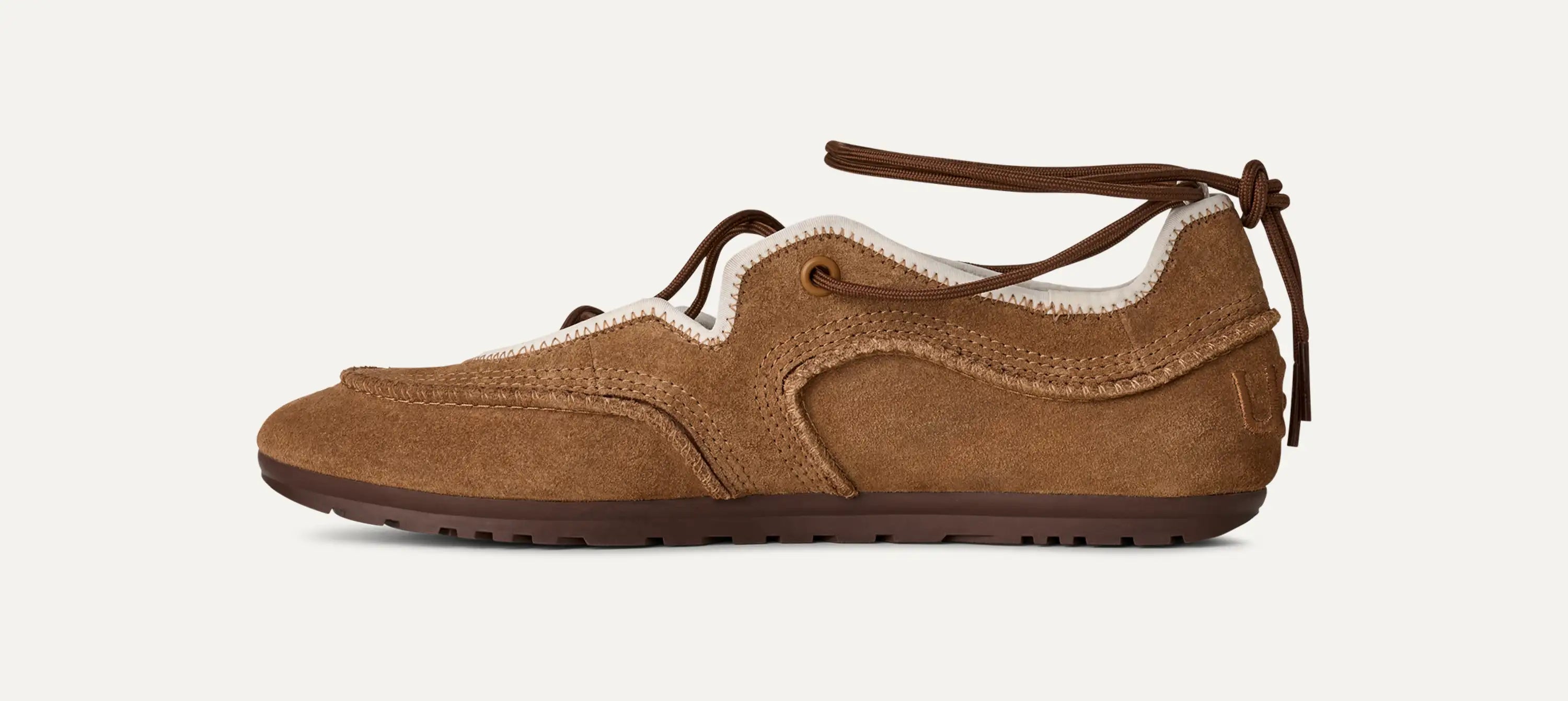 Our Quill Ballet Sneaker makes its debut. This melding of two styles joins the timeless silhouette of a flat with the casual comfort of a sneaker. Laced together with a ballet-inspired system, cut from a smooth suede, and detailed with pronounced stitched seaming.