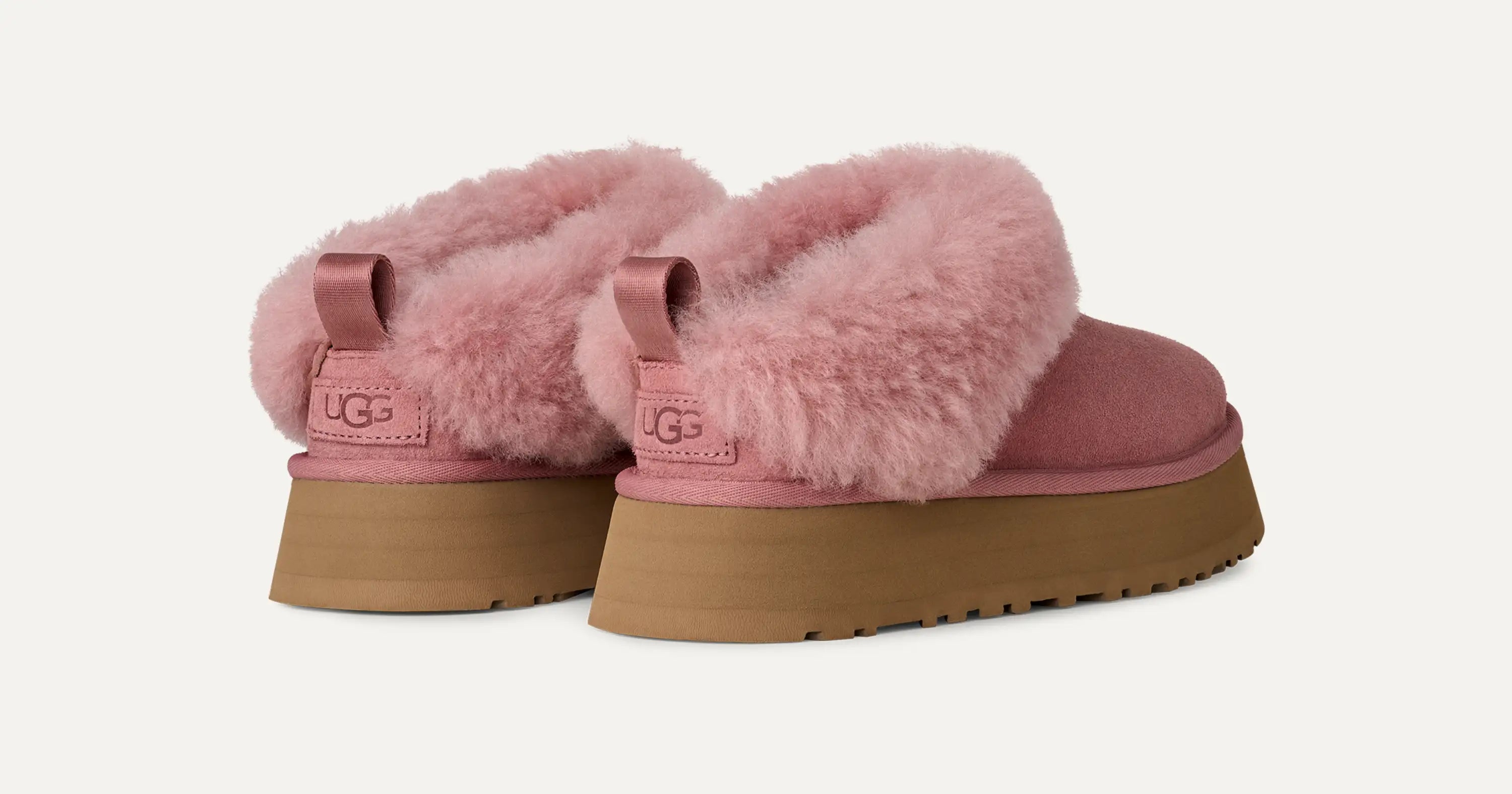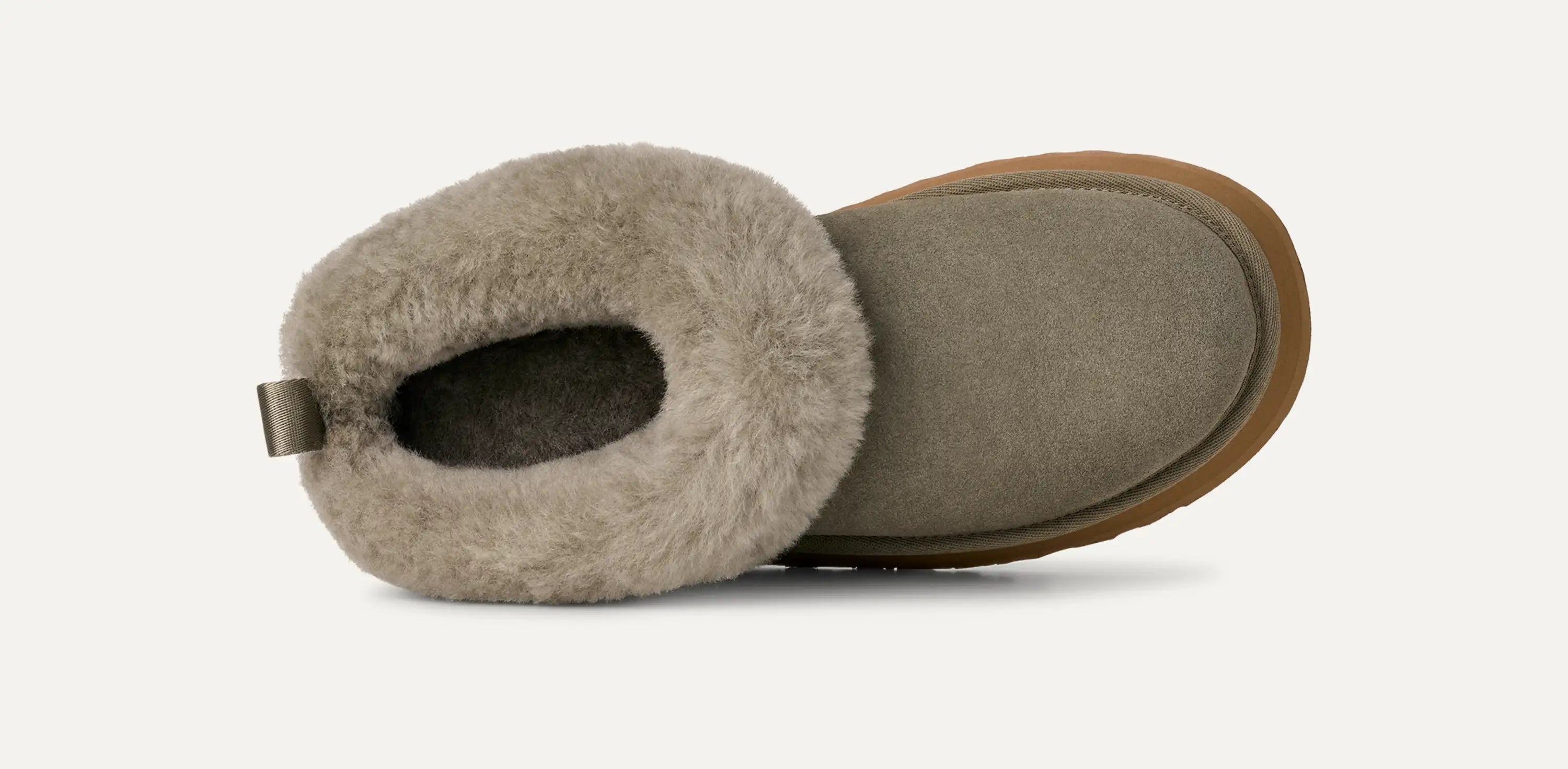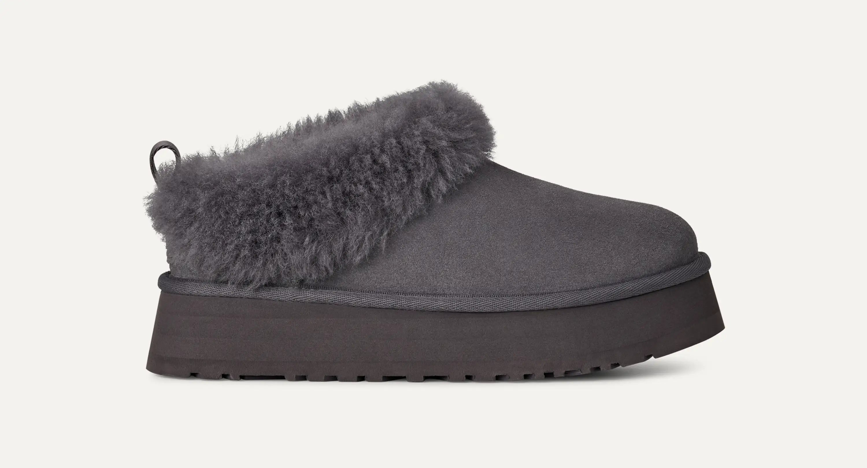 Love the Tazz but want even more UGG® coziness? Our Tazzelle is the one for you. This ultra-plush indoor-outdoor slipper features genuine suede and a lightweight 1.75" platform made from springy sugarcane EVA. Sheepskin lines the interior and continues onto the lush fixed cuff, so you can wear these with socks, or without.