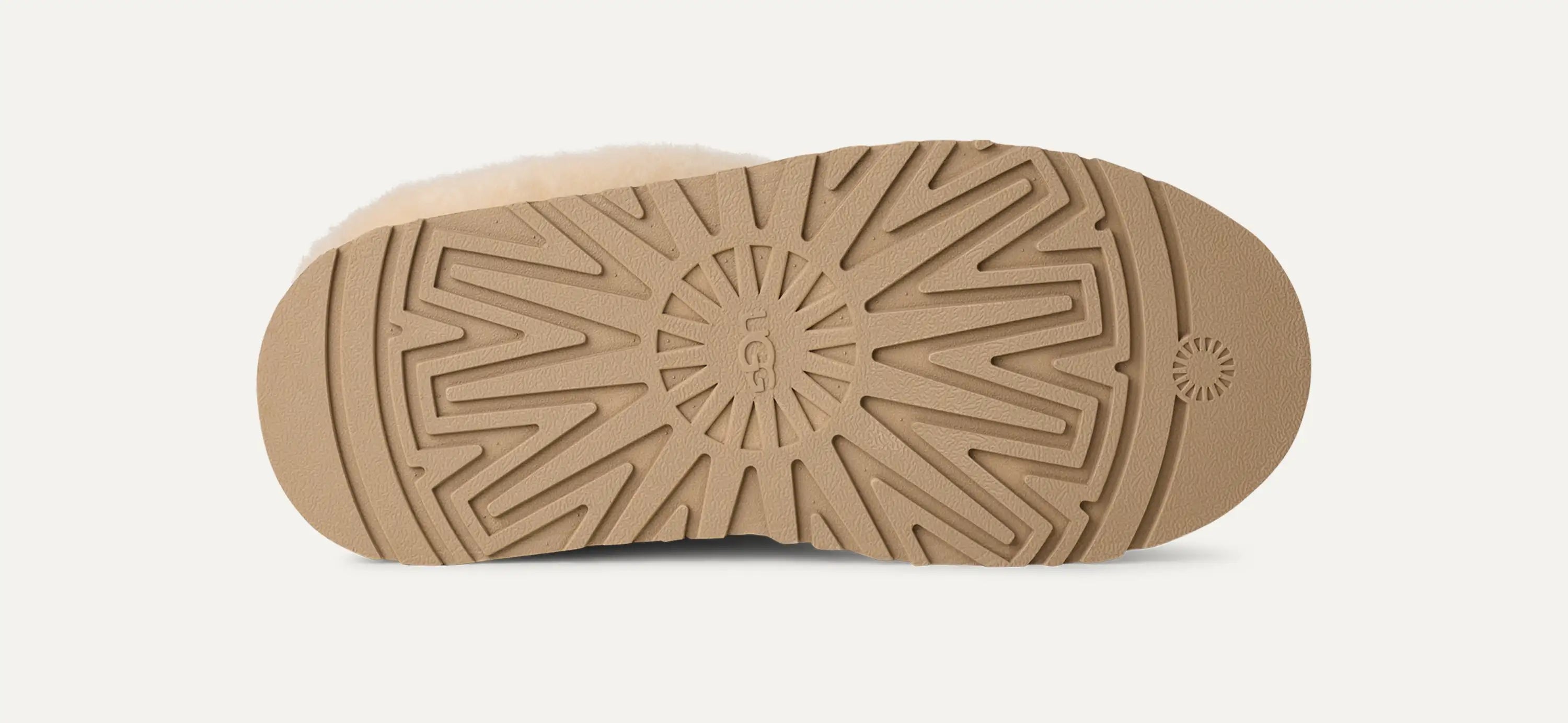 Features & Benefits Sugarcane EVA™ UGGplush Lining Details Our iconic Neumel heritage style is crafted with Twinface sheepskin that originates from farms that practice regenerative agriculture, which helps restore soil, encourages wildlife diversity, captures carbon in the ground, and preserves the land for future...