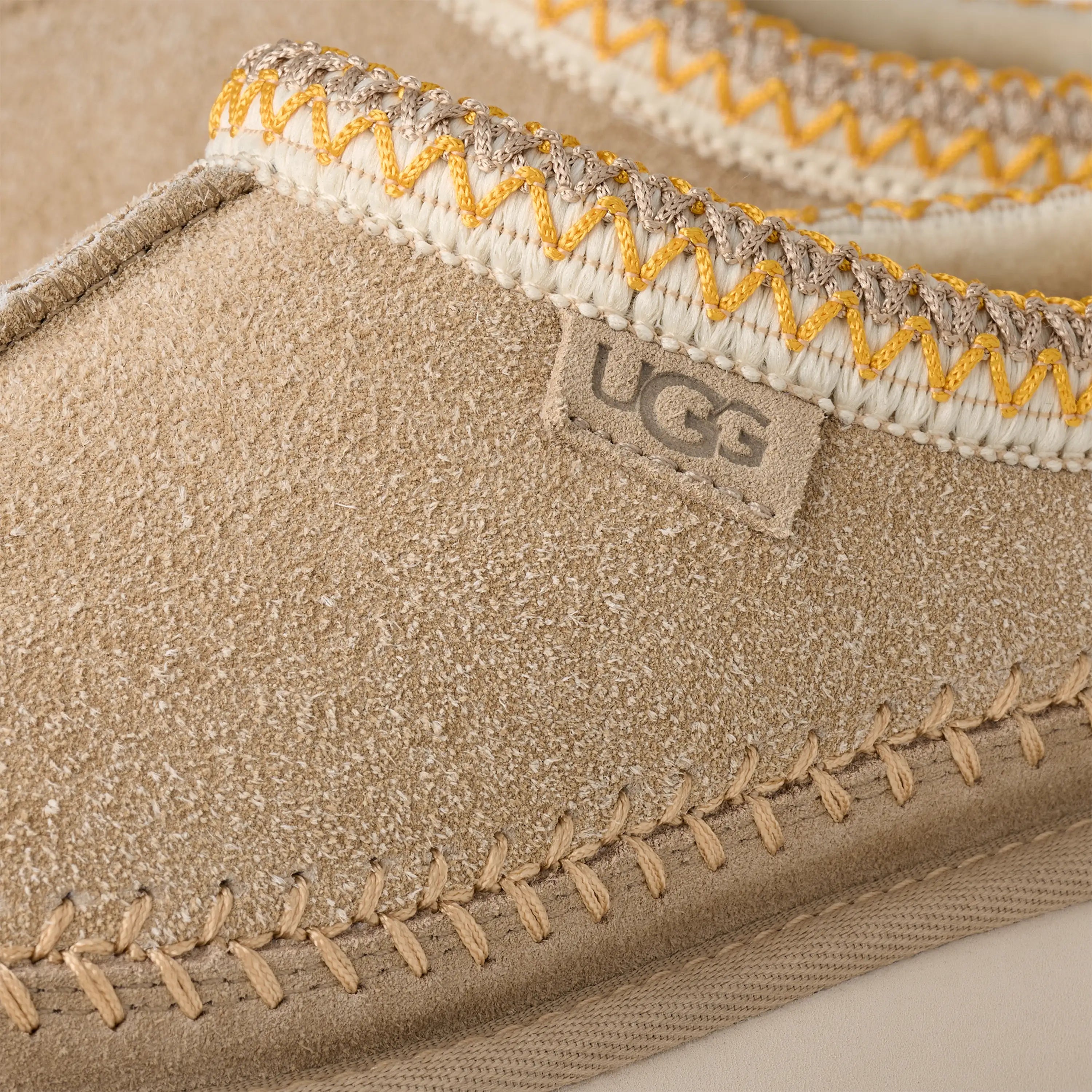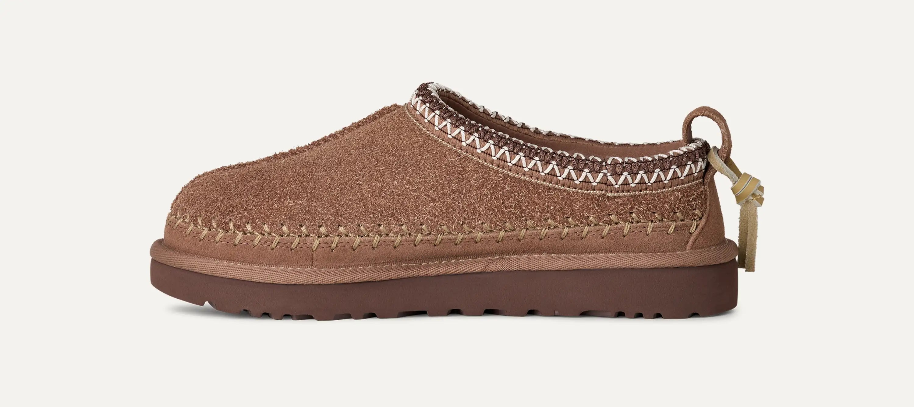 Our Tasman is one of our tried-and-true classics loved for its endless wearability and effortless style, and our Tasman Biarritz is no exception. This limited edition Tasman is inspired by spontaneous weekends away, dreamy sunsets, and nostalgic seaside sessions. Crafted with a hairy suede upper topped with our signature UGGbraid collar and Twin Seam details, we've also added decorative stitching and a genuine leather pull tab. Inside you'll be surrounded in plush sheepskin while the outsole is made with lightweight sugarcane EVA so you get that sweet slipper feel, whether you're indoors or outside.