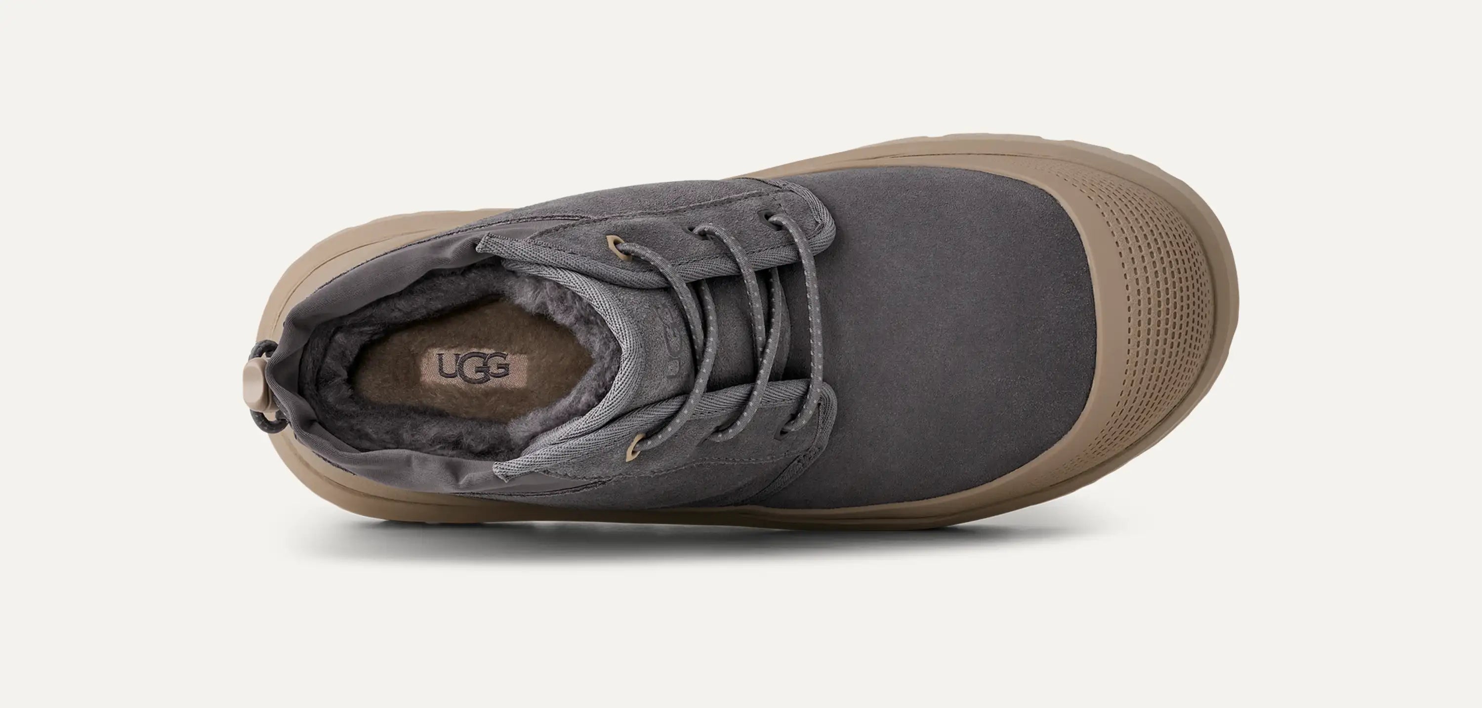 Our iconic heritage chukka, The Neumel, gets a weatherized upgrade. A timeless boot made of rich, waterproof suede, it's lined in our UGGplush™ upcycled wool blend and finished with an outsole made from renewable, rainwater-nourished sugarcane for all-day cushioning and a signature Classic-like feel indoors or out. White Spider Rubber® outsole pods offer enhanced traction.