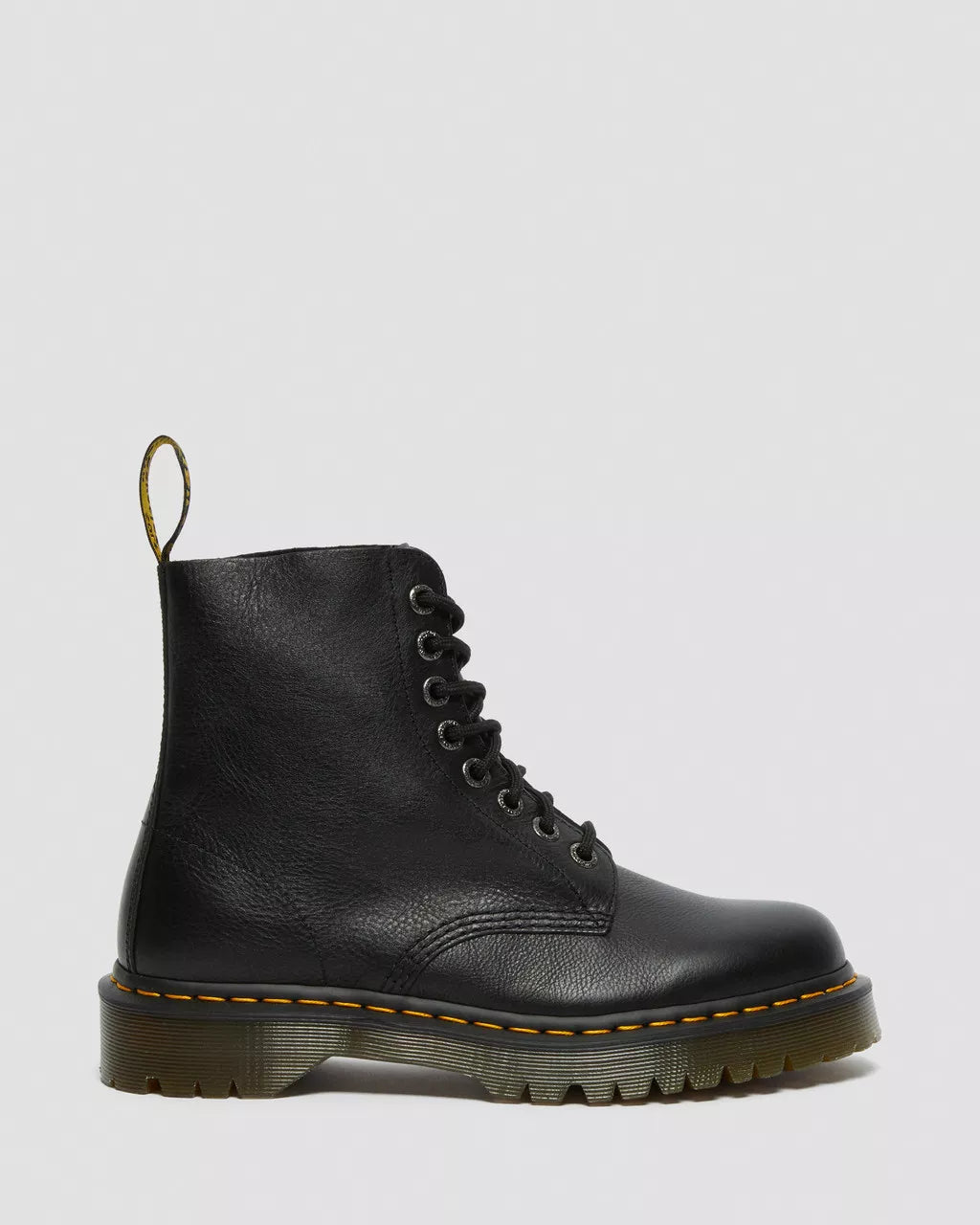 Our iconic 1460 boot has been reimagined in Pisa – a super-soft leather with a waxy finish. Punched with antique gold eyelets, the 1460 Pascal has a worn-in appearance with our iconic yellow welt stitch and a smoke-colored stacked Bex sole for extra height and attitude.Born on 01.04.60. Named the 1460. Over six decades, our 8-eye work boot has become iconicPisa is a medium-weight milled nappa leather with a soft tumbled handle and richly pigmented waxy finishOur Goodyear-welted lines are heat-sealed at 700°C and reinforced with our signature welt stitchFootbed - Slimmer and a more tapered shapePlatform height: 1 in; Heel height: 1 3/8 in