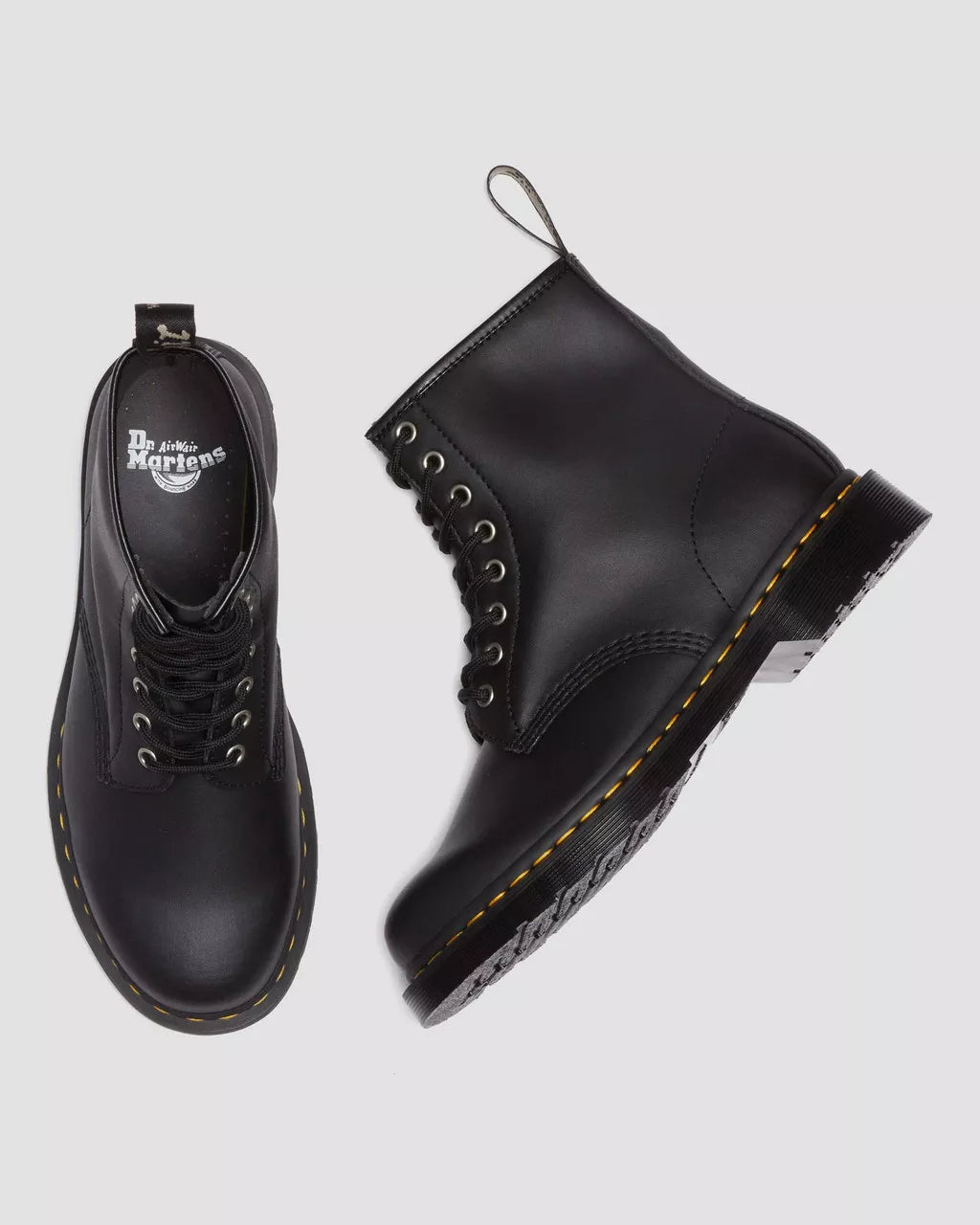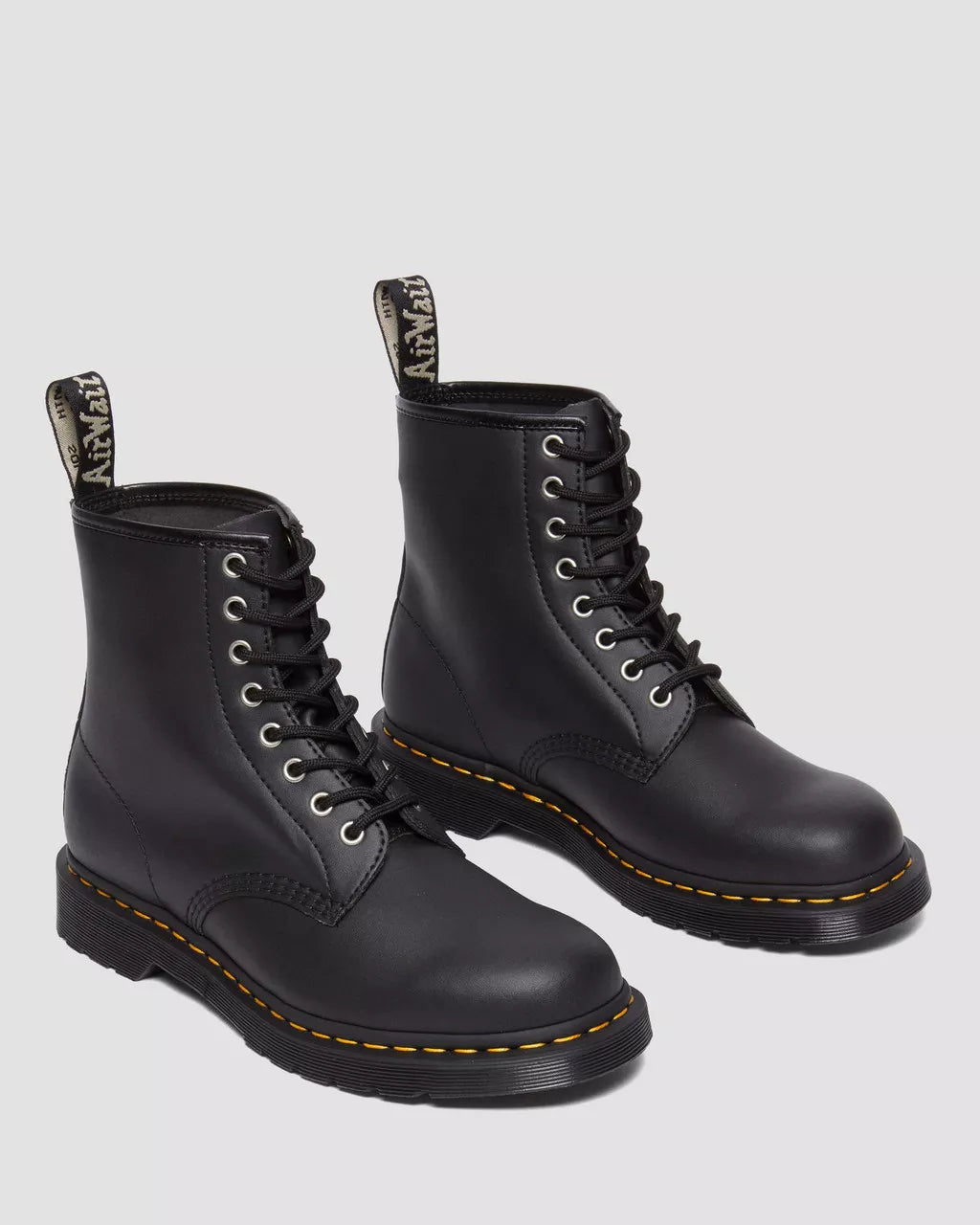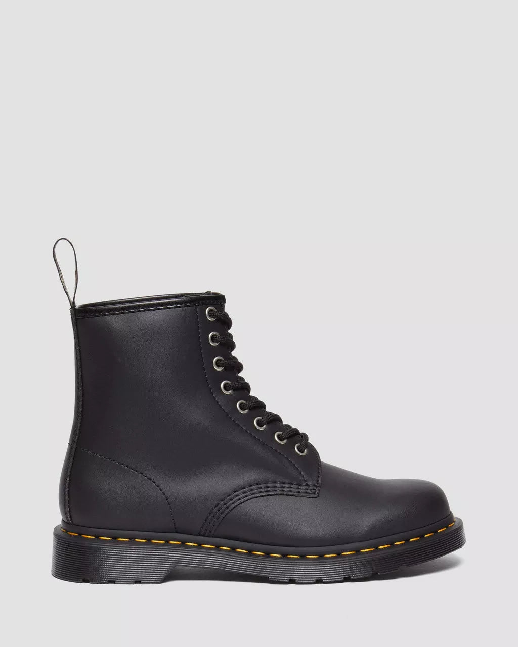 Our traditional 8-eye lace up boot built from waste-reduction Genix Nappa. Our latest innovation re-engineers reclaimed leather offcuts into a soft, lightweight material without compromising Dr. Martens renowned durability. Supple straight from the box with minimal break-in required. Set on our classic DMS outsole and finished with a signature yellow welt stitch. Each pair is highlighted with a special edition AirWair heel loop to celebrate our commitment to material innovation.Born on 1st April 1960. Named the 1460 boot. Our 8-eye boot is unmistakable. Remixed and redefined — never replicated.Genix Nappa is our latest innovation - leather offcuts are re-engineered into a soft, lightweight, durable material. One of the many steps we’re taking to reduce waste.The DMS sole is a cornerstone of Dr. Martens construction. A two-tone PVC sole marked with our signature grooving and our unique tread.Our Goodyear-welted lines are heat-sealed and reinforced with our signature welt stitch.