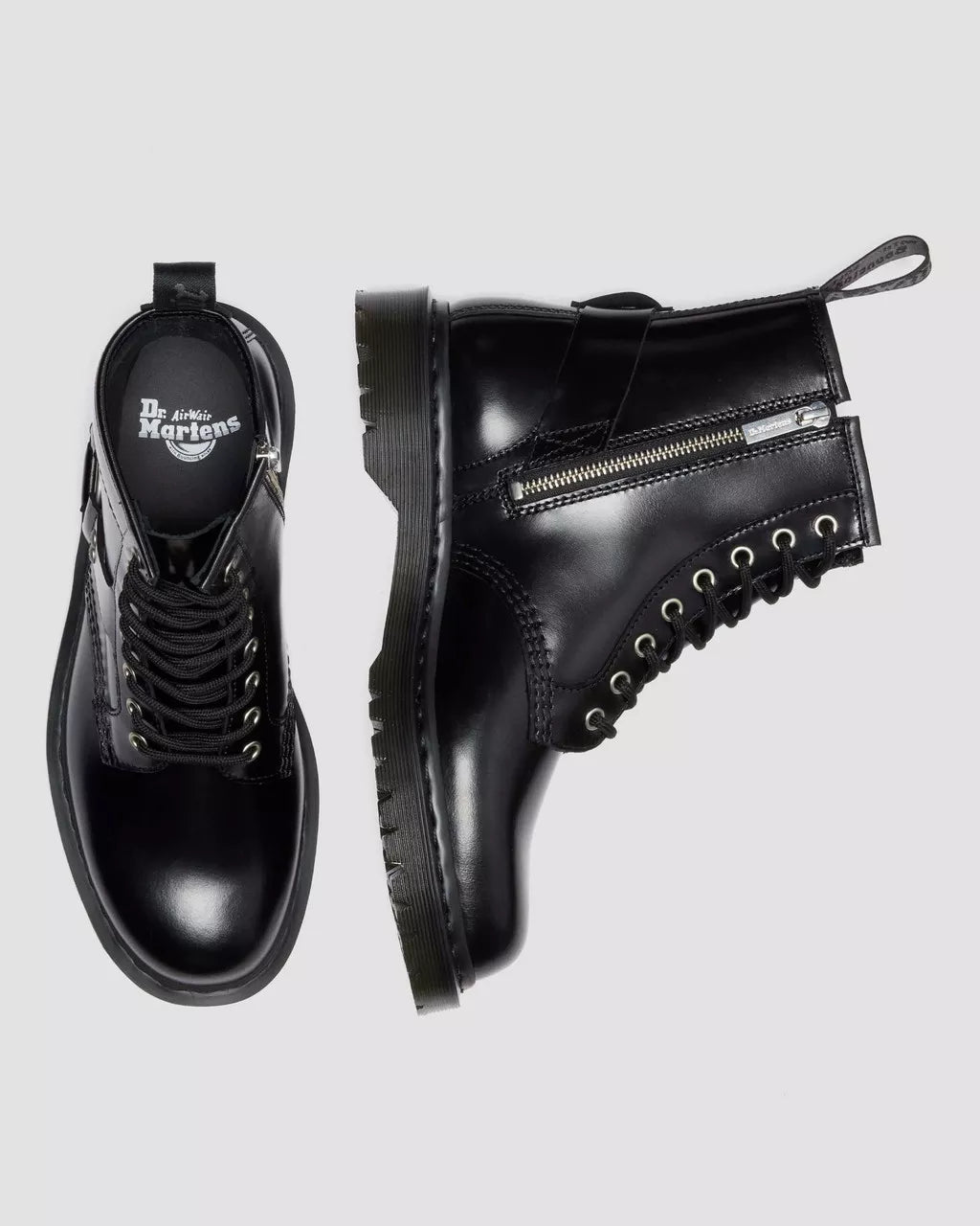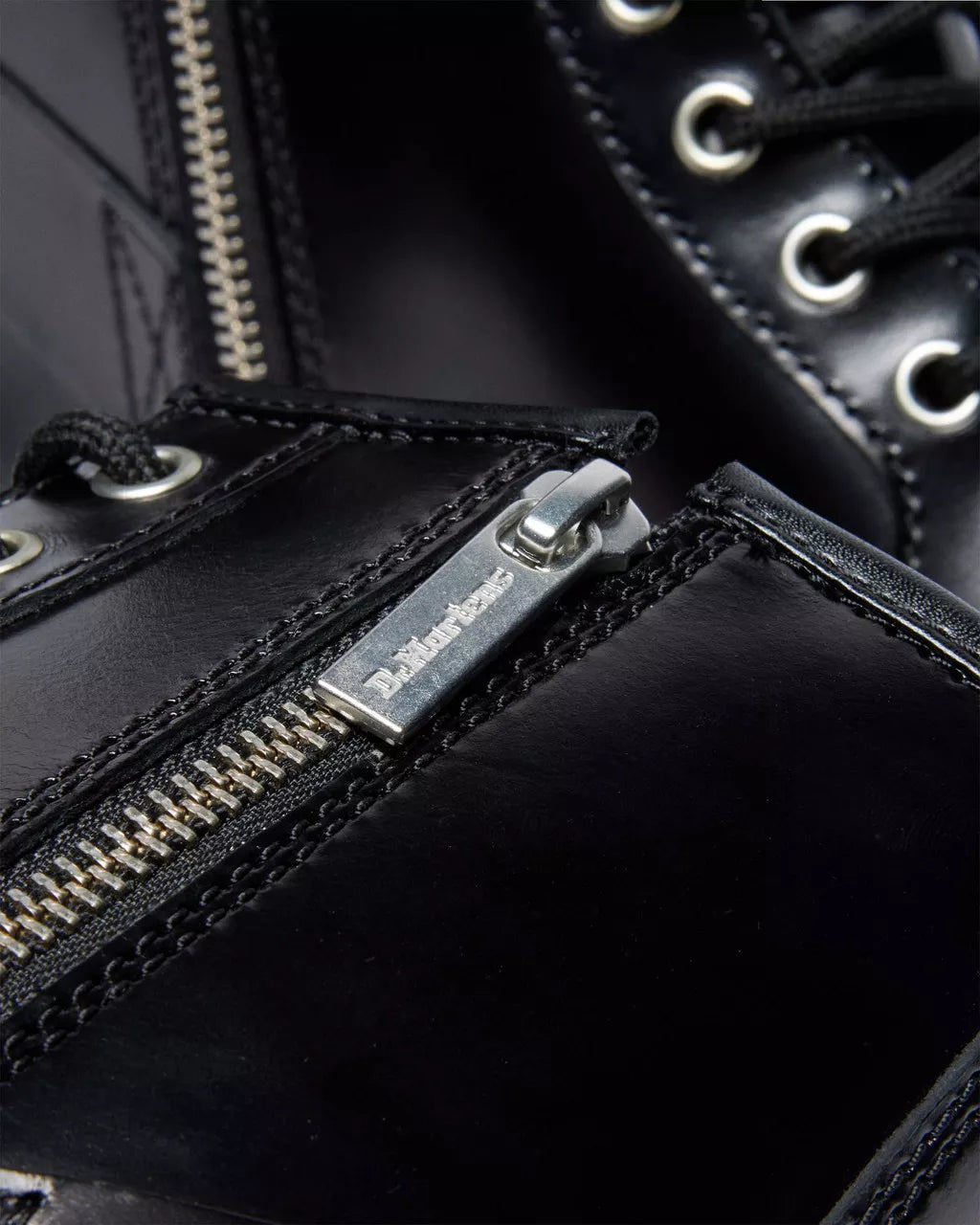 Archive DNA – punked up. The 1460 Harness 8-eye boot fuses heritage with heavy-duty detailing. We added a strong dose of brushed silver hardware in the form of a harness, studs and eyelets. With an inner zip for easy pulling on and taking off, and monochrome accents with black laces, a black and gunmetal heel loop, and black welt stitching. All atop our smoke lugged BEN sole with classic grooving.