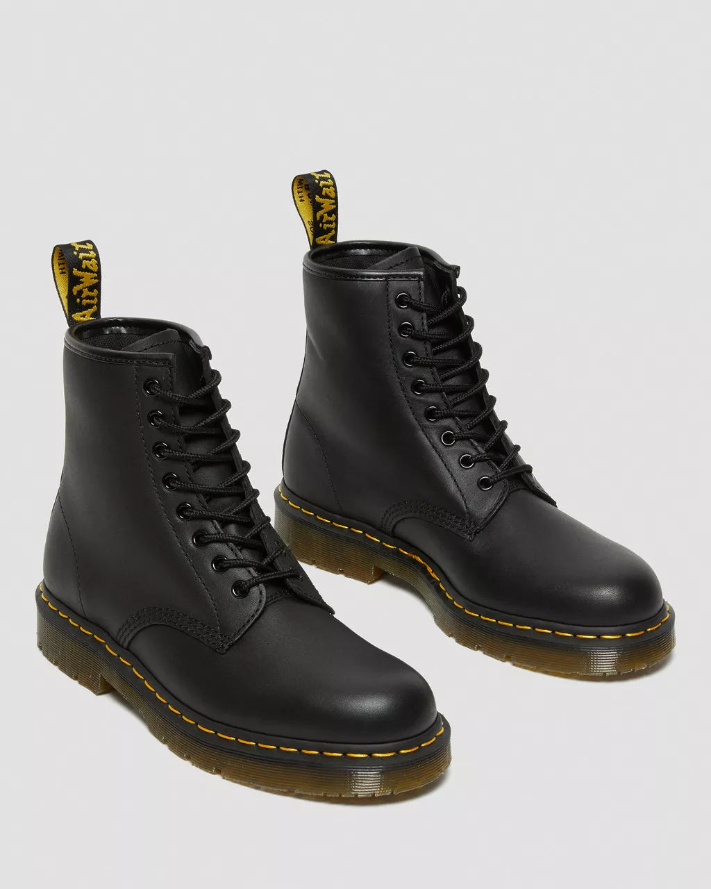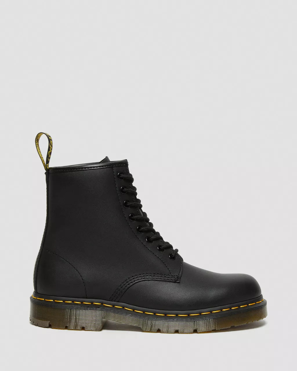 For tough Mondays and easy Sundays. This slip-resistant rework of our Original 1460 boot is designed to keep you bouncing from start to finish. Anti-fatigue. Pro-comfort. The 8-eye boot is breathable, flexible, and fitted with a memory foam SoftWair footbed for extra cushioning. It’s made with splash-resistant leather and a unique Grip-Trax tread that dissipates water for increased traction on slippery surfaces. Unmistakably Doc’s, the boot is signed with grooved sole walls, yellow welt stitching, and a black and yellow heel loop.Learn more about our Slip Resistant Originals