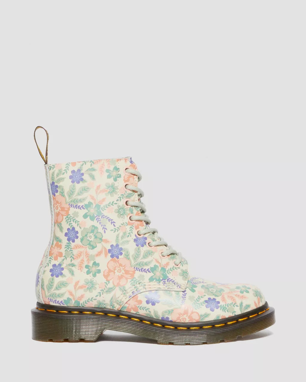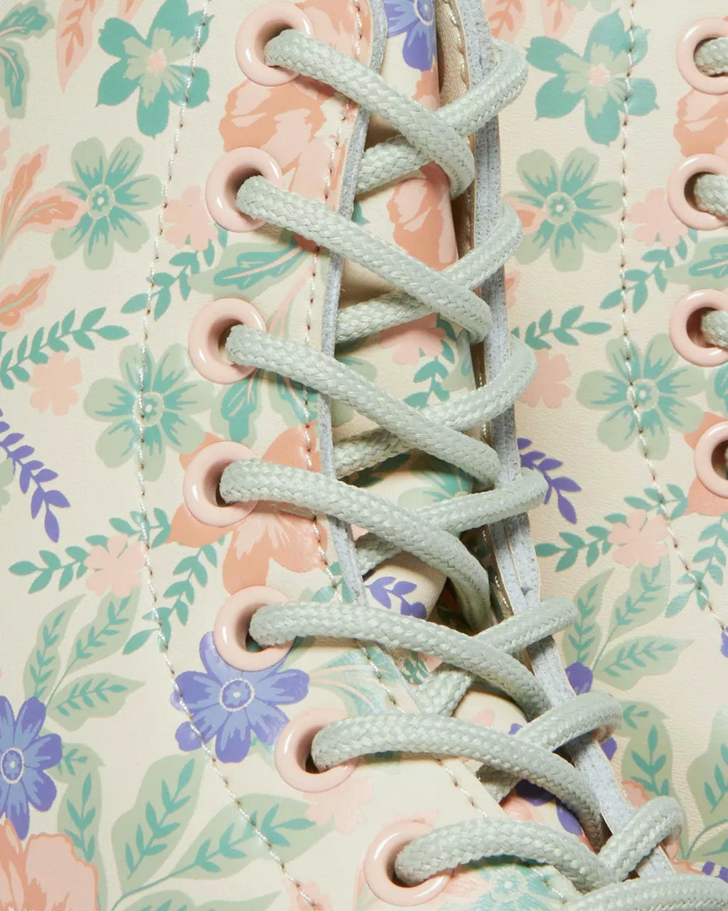 The 1460 boot. The Original. Born 1st April 1960, and named after the date. Our unmistakable 8-eye boot started life at workers’ feet — and soon became a cultural icon. The latest remix of our most recognisable boot is made using Genix Nappa, a re-engineered material made from reclaimed leather offcuts. The boot is decorated from heel to toe with a pop floral print on a cloud cream base, with tonal laces and eyelets. Hallmarks of our design DNA remain across the silhouette, with a grooved sole edge, yellow welt stitching, and a scripted heel loop.