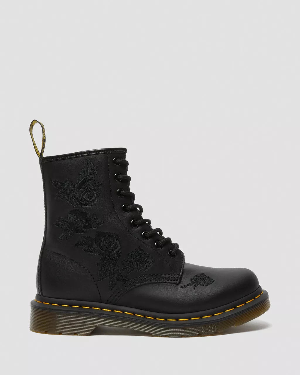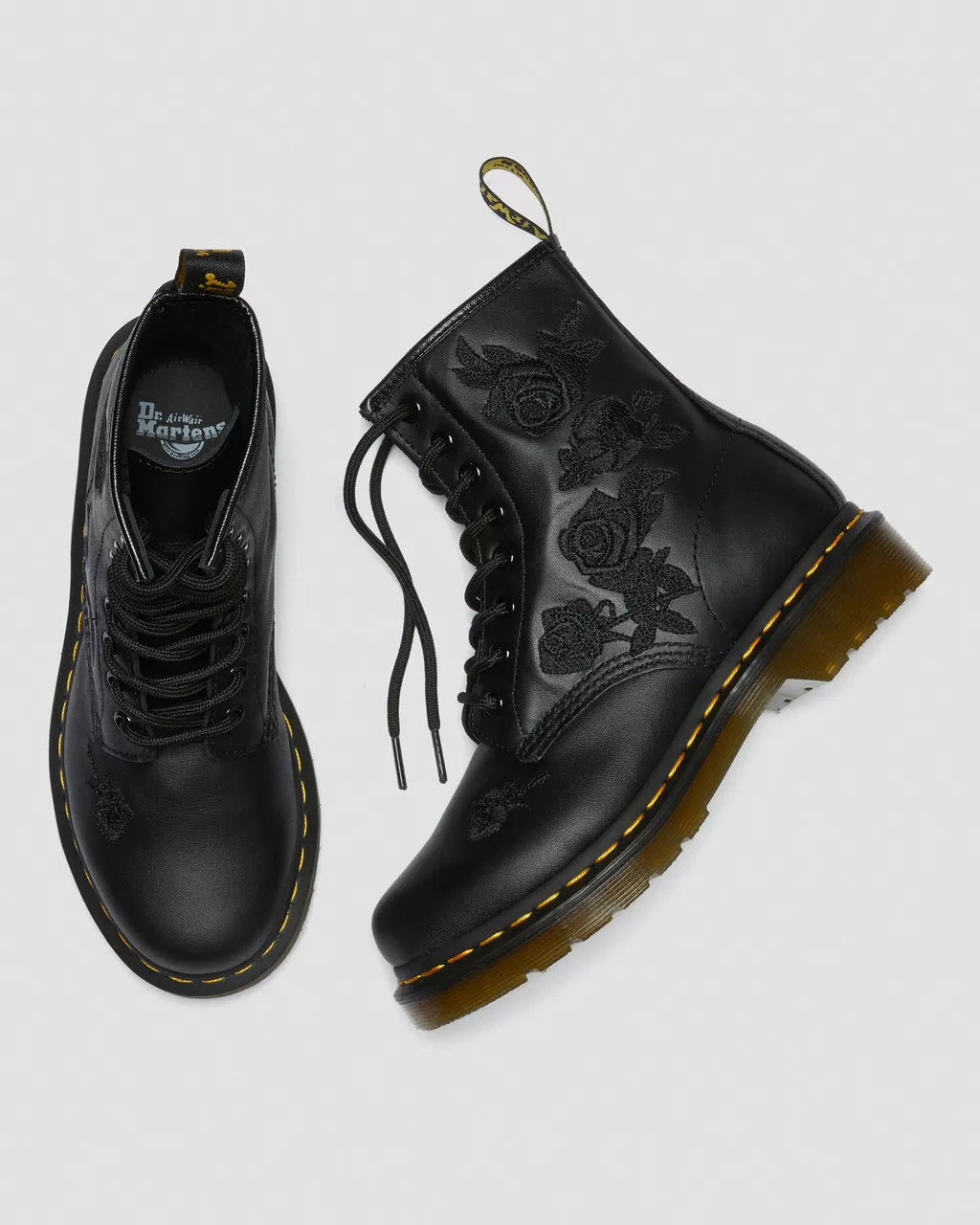The 1460 was the first Dr. Martens boot — and this one is true to the original, but borrows style from the 14-eye 1914 Vonda. Black embroidered flowers cascade down the side of the boot, designed especially by our in-house creatives.Softy T is a lightweight, full-grain leather with a soft and supple feel. Clean with a damp cloth and care with Dr. Martens Shoe PolishEmbroidered detailingOur Goodyear-welted lines are heat-sealed at 700°C and reinforced with our signature welt stitch