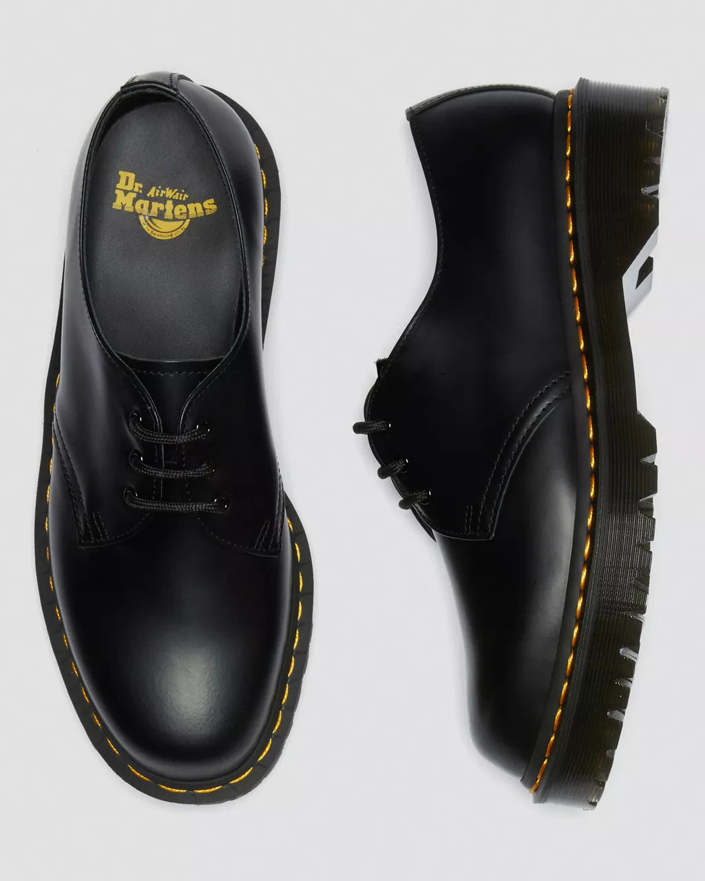 Show your shoes some more sole. We’ve added extra height and edge to our classic 1461 shoe with our Bex platform sole — marked by exaggerated cleats and a deeper tread pattern. Crafted from Smooth leather that you can wear polished or scuffed. The sole is finished with our grooving pattern and signature yellow welt stitching.Platform height: 1 in; Heel height: 1 3/8 in